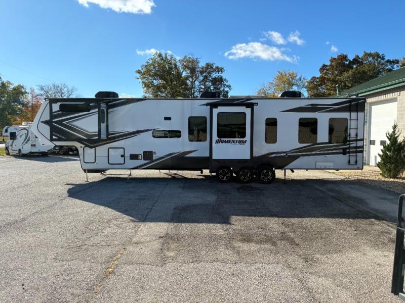 Grand Design Momentum M-Class 414M toy hauler fifth wheel highlights: