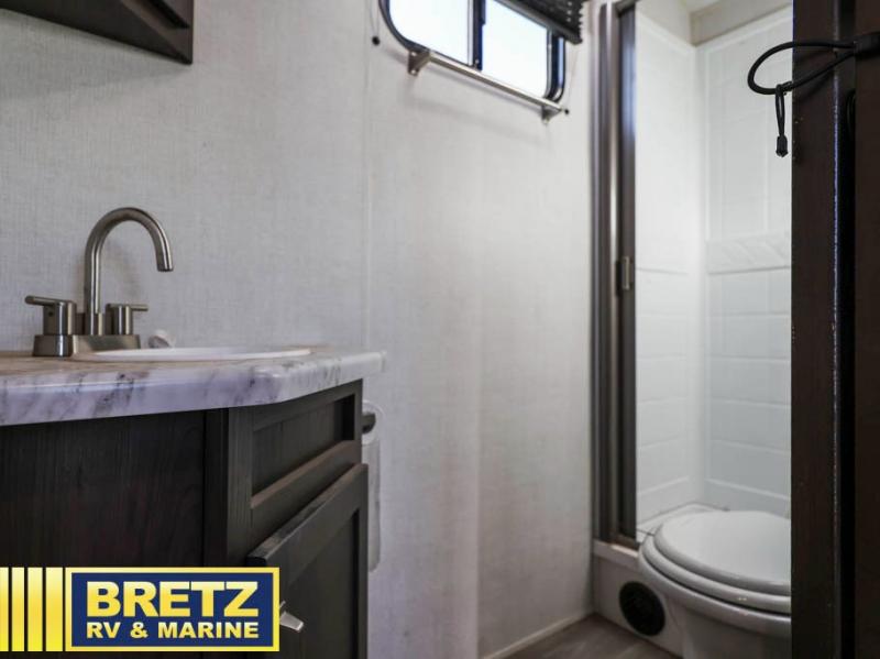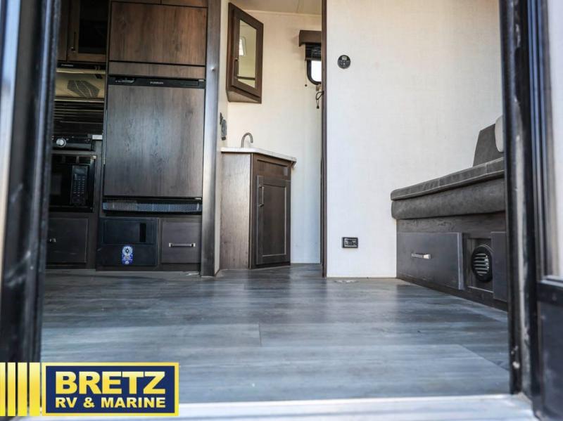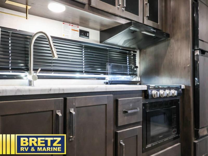 The Momentum MAV toy hauler travel trailers by Grand Design are designed to provide exactly what you need. The spacious garage provides tons of cargo space, with no wheel wells to get in the way. Additional storage includes magnetic storage door catches, underbed storage with a gas strut lift, and overhead consoles throughout. Conveniences like motion sensor lights and USB outlets will make your life easier, and you will be comfortable in all seasons with the 30K BTU furnace plus 15K BTU ducted air conditioning. The standard Solar Package comes with a 180W solar panel, a 40 Amp charge controller with Bluetooth, and a 12V refrigerator so you can go off-grid when the adventure calls for it.