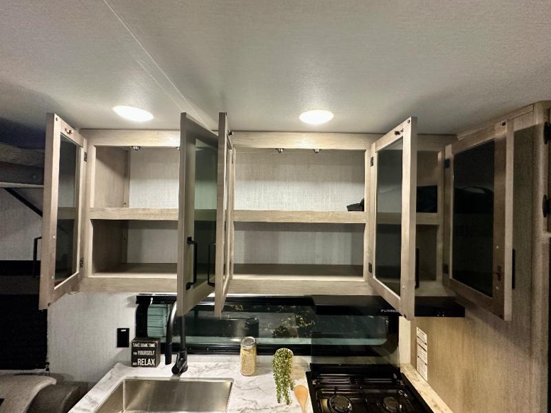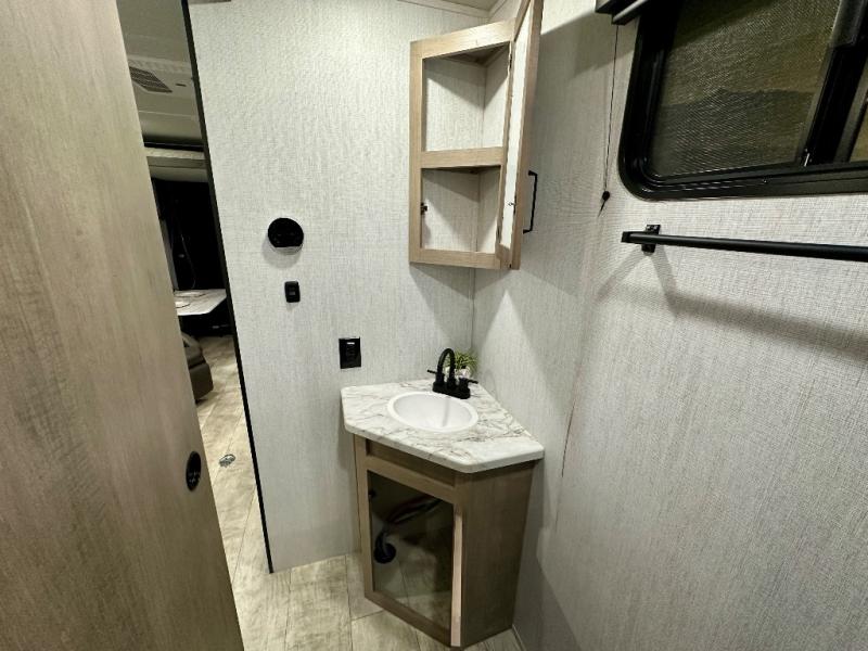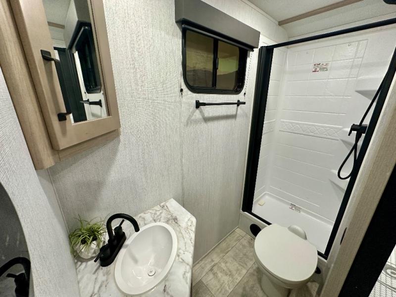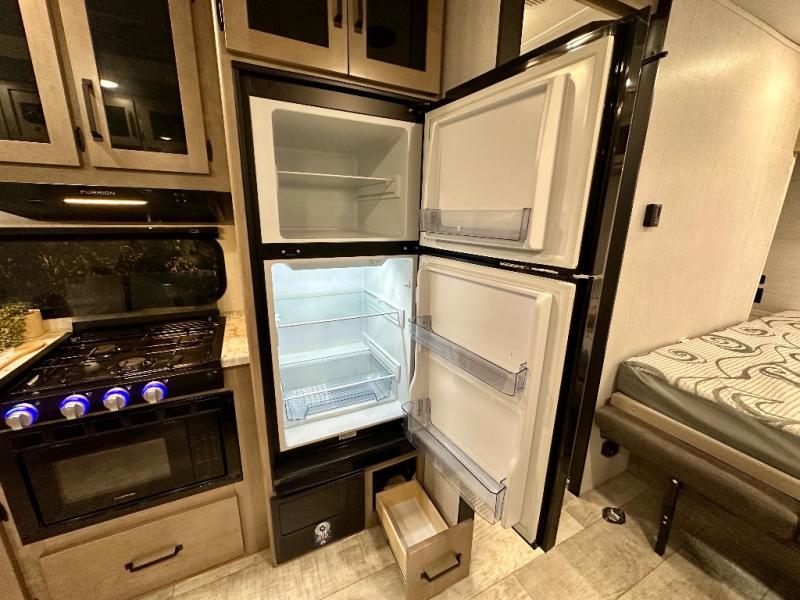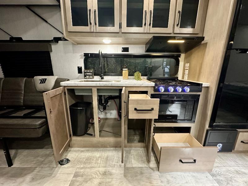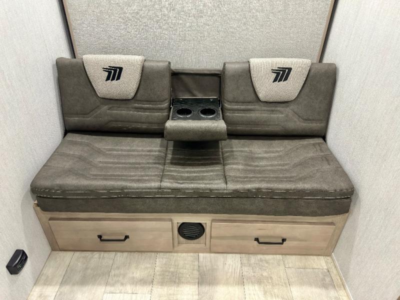 The Momentum MAV toy hauler travel trailers by Grand Design are designed to provide exactly what you need. The spacious garage provides tons of cargo space, with no wheel wells to get in the way. Additional storage includes magnetic storage door catches, underbed storage with a gas strut lift, and overhead consoles throughout. Conveniences like motion sensor lights and USB outlets will make your life easier, and you will be comfortable in all seasons with the 30K BTU furnace plus 15K BTU ducted air conditioning. The standard Solar Package comes with a 180W solar panel, a 40 Amp charge controller with Bluetooth, and a 12V refrigerator so you can go off-grid when the adventure calls for it.