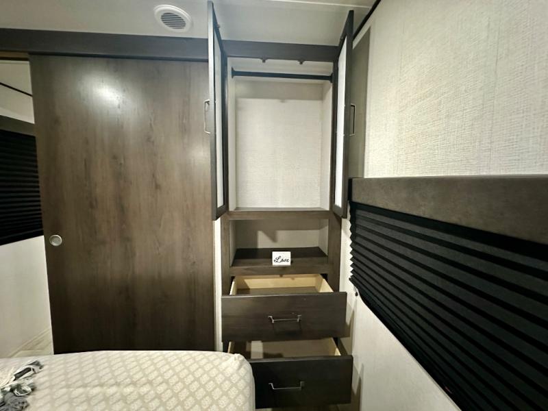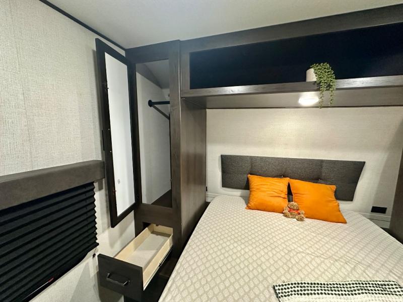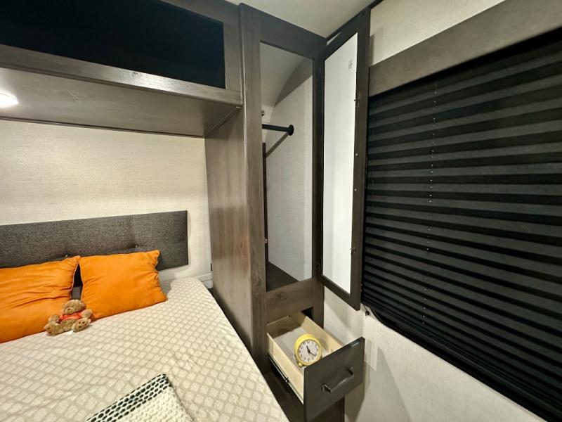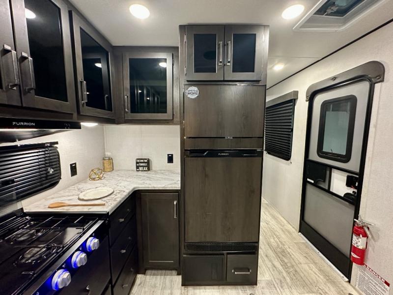 The Momentum MAV toy hauler travel trailers by Grand Design are designed to provide exactly what you need. The spacious garage provides tons of cargo space, with no wheel wells to get in the way. Additional storage includes magnetic storage door catches, underbed storage with a gas strut lift, and overhead consoles throughout. Conveniences like motion sensor lights and USB outlets will make your life easier, and you will be comfortable in all seasons with the 30K BTU furnace plus 15K BTU ducted air conditioning. The standard Solar Package comes with a 180W solar panel, a 40 Amp charge controller with Bluetooth, and a 12V refrigerator so you can go off-grid when the adventure calls for it.