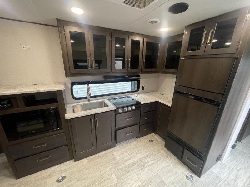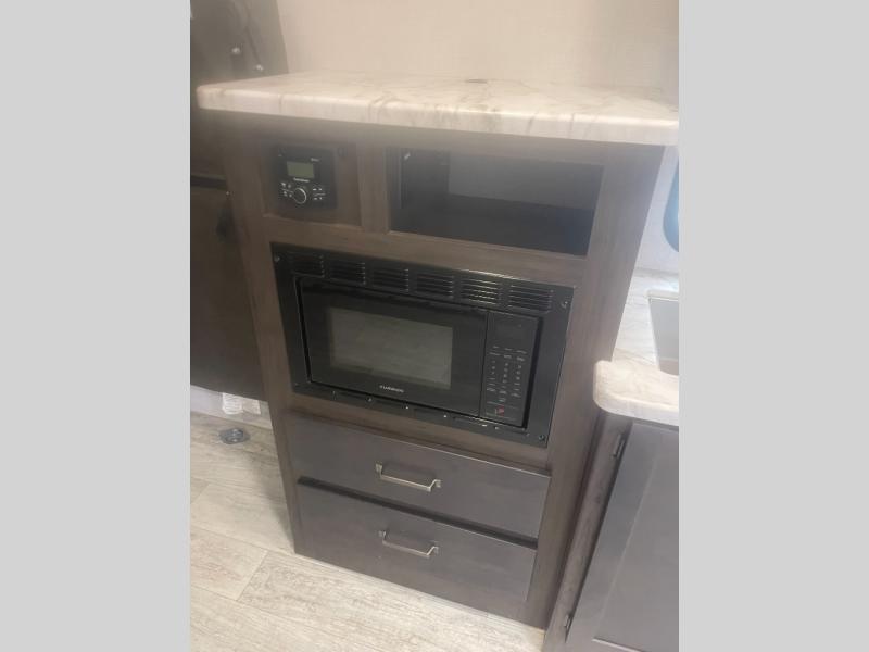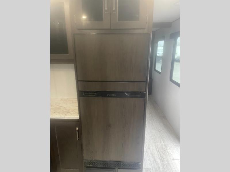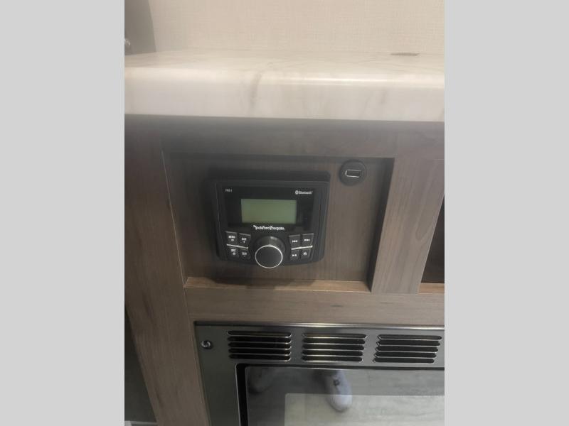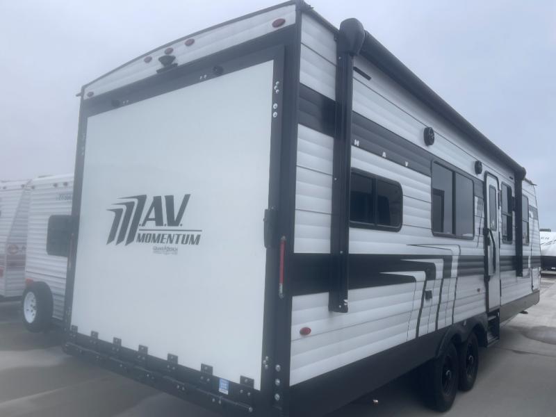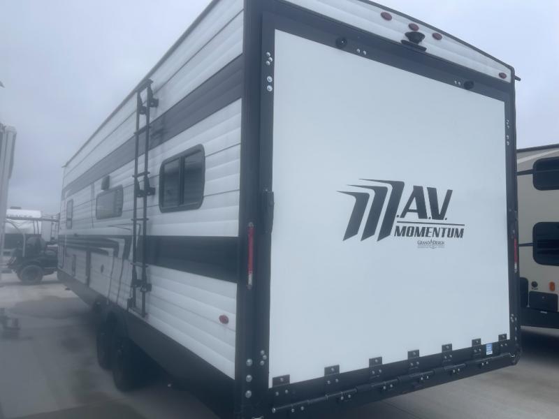 The Momentum MAV toy hauler travel trailers by Grand Design are designed to provide exactly what you need. The spacious garage provides tons of cargo space, with no wheel wells to get in the way. Additional storage includes magnetic storage door catches, underbed storage with a gas strut lift, and overhead consoles throughout. Conveniences like motion sensor lights and USB outlets will make your life easier, and you will be comfortable in all seasons with the 30K BTU furnace plus 15K BTU ducted air conditioning. The standard Solar Package comes with a 180W solar panel, a 40 Amp charge controller with Bluetooth, and a 12V refrigerator so you can go off-grid when the adventure calls for it.