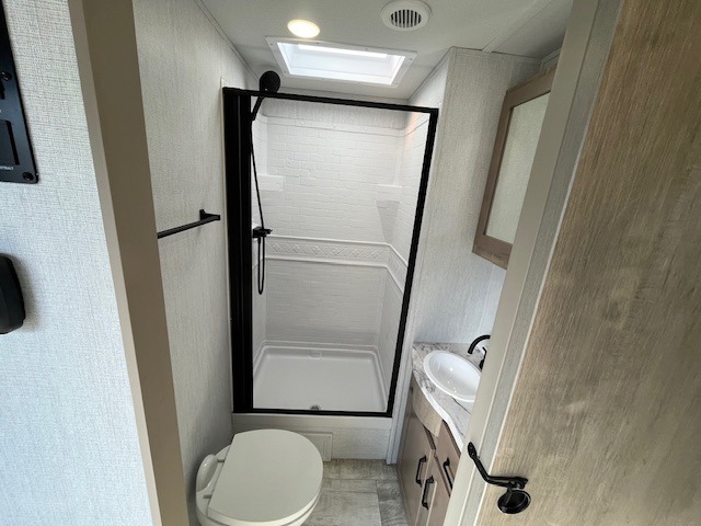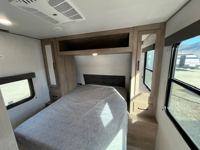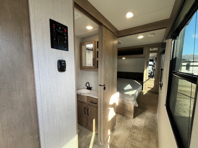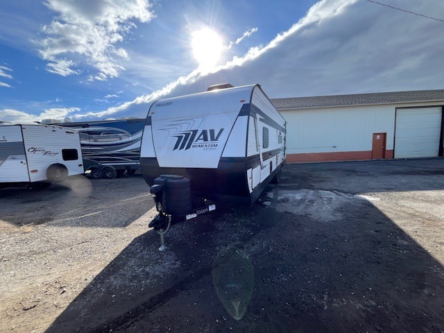 The Momentum MAV toy hauler travel trailers by Grand Design are designed to provide exactly what you need. The spacious garage provides tons of cargo space, with no wheel wells to get in the way. Additional storage includes magnetic storage door catches, underbed storage with a gas strut lift, and overhead consoles throughout. Conveniences like motion sensor lights and USB outlets will make your life easier, and you will be comfortable in all seasons with the 30K BTU furnace plus 15K BTU ducted air conditioning. The standard Solar Package comes with a 180W solar panel, a 40 Amp charge controller with Bluetooth, and a 12V refrigerator so you can go off-grid when the adventure calls for it.