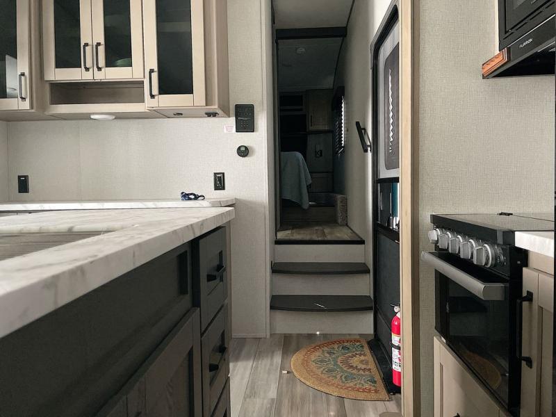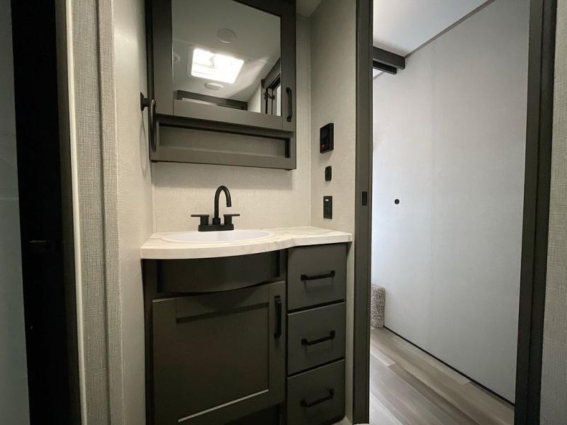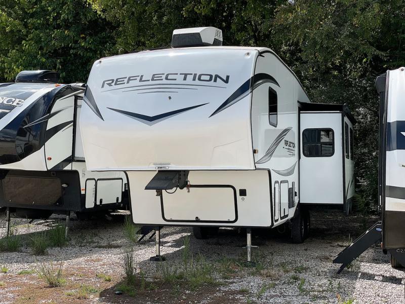 Each Reflection 100 Series fifth wheel by Grand Design is affordable and packed with luxury for unforgettable camping memories! The MorRyde CRE3000 suspension system and Goodyear Endurance tires will provide smooth towing from home to campground. And the solar package with a 180W solar panel, 60 Amp charge controller and 12V refrigerator will allow you to camp for longer periods of time and in more locations! A heated and enclosed underbelly with circulating heat is included in the Arctic 4-Seasons Protection Package, along with a double insulated roof and front cap, and thermofoil insulation under the holding tanks so you can camp all year long if you choose. You will appreciate having an on-demand water heater for hot showers after exploring, and the universal all-in-one docking station will let you monitor your RVs tanks levels and functions with ease. These models also include many luxurious interior features, such as premium Congoleum flooring, pleated shades, residential cabinetry, and matte black fixtures and hardware. Don't let the Reflection 100 Series fifth wheels pass you by!