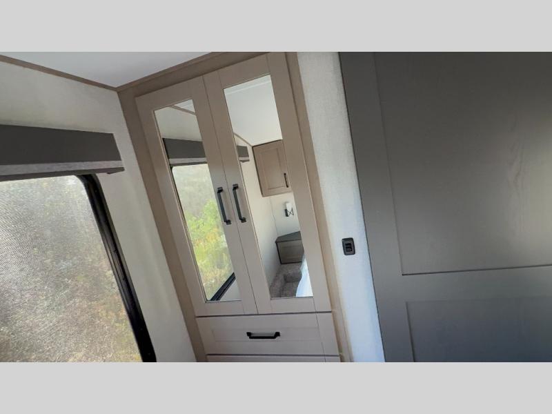 With any Reflection 150 Series fifth wheel by Grand Design, there is more available payload capacity and a broader range of half-ton trucks capable of towing this fifth wheel, and no slider hitch is needed thanks to the 90-degree turning radius which makes them short bed friendly and easier to tow. The mandatory Ultimate Power package provides a "One-Touch" automatic leveling system and a detachable power cord with LED light for easy setup, plus motion sensor pass-through lighting and entry lighting, and the Tire Linc TPMS will help you stay safe on the road. The interior offers residential luxury from the cabinetry and premium congoleum flooring, plus the booth dinette to the residential-style window treatment. Make your refined decision today!