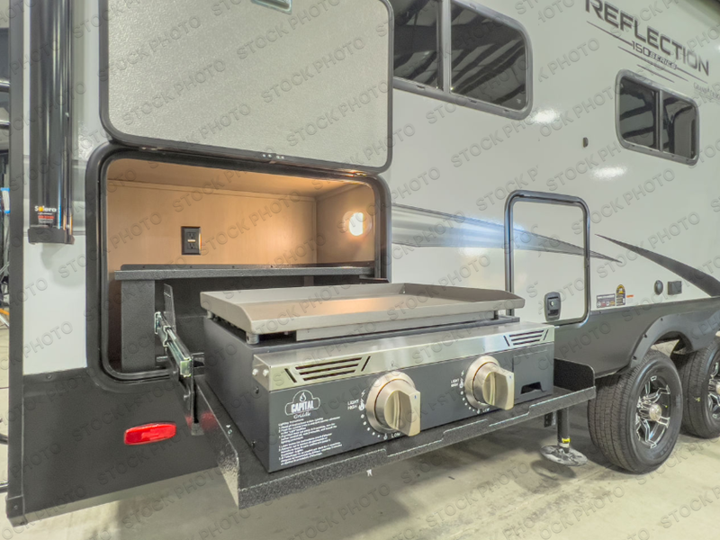 With any Reflection 150 Series fifth wheel by Grand Design, there is more available payload capacity and a broader range of half-ton trucks capable of towing this fifth wheel, and no slider hitch is needed thanks to the 90-degree turning radius which makes them short bed friendly and easier to tow. The mandatory Ultimate Power package provides a "One-Touch" automatic leveling system and a detachable power cord with LED light for easy setup, plus motion sensor pass-through lighting and entry lighting, and the Tire Linc TPMS will help you stay safe on the road. The interior offers residential luxury from the cabinetry and premium congoleum flooring, plus the booth dinette to the residential-style window treatment. Make your refined decision today!