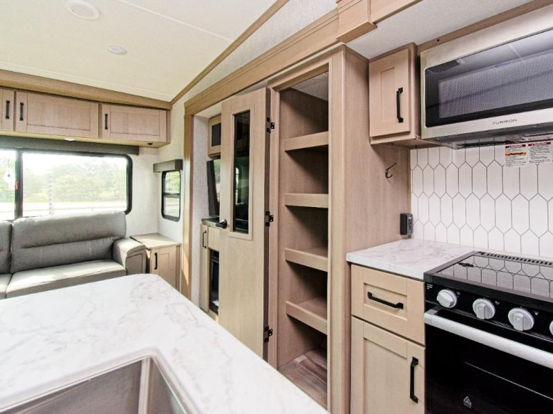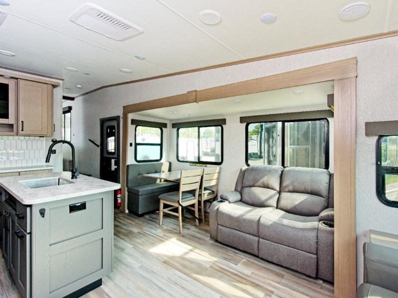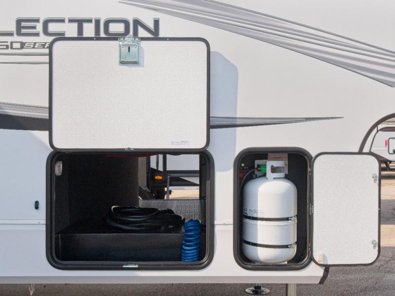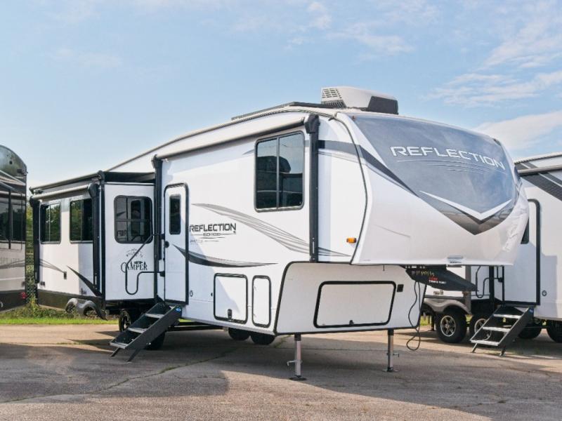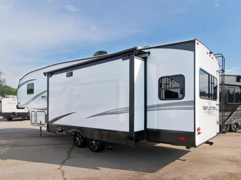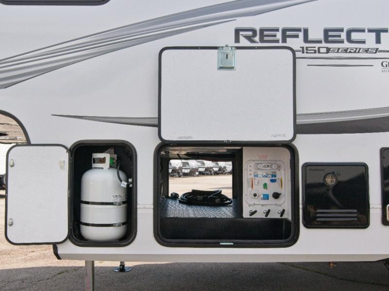 The Reflection 150 Series 295RL is built for travelers who want residential comfort with the flexibility of towing with a half-ton truck. With two electric awnings, you can create shaded outdoor living spaces, while the heated pass-through storage keeps your gear organized and accessible.