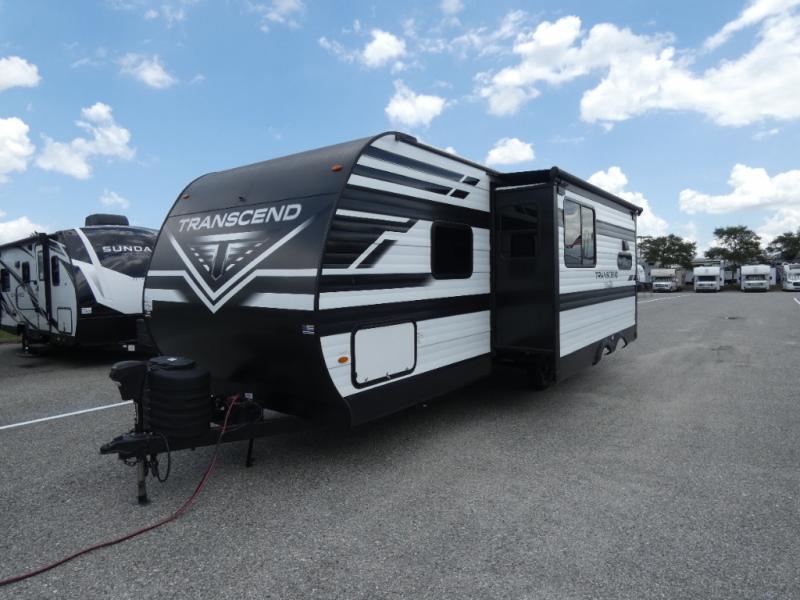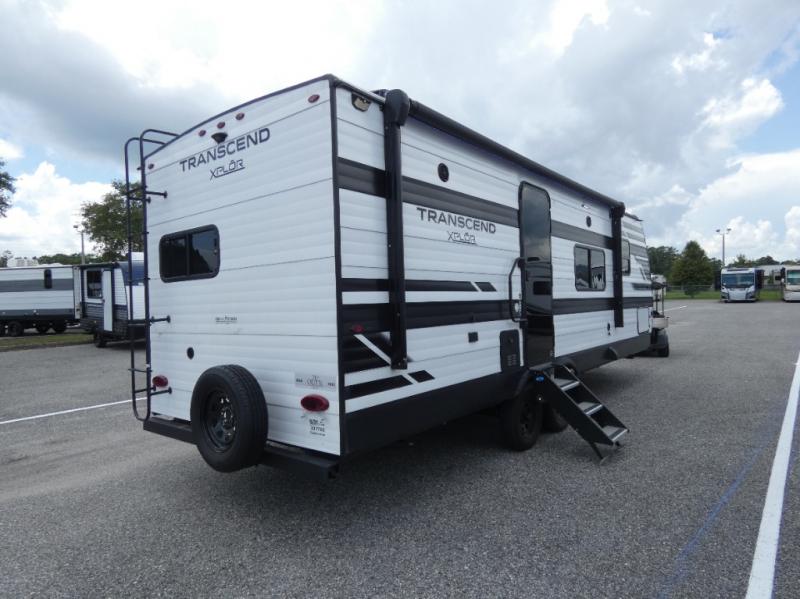 The customer-focused, quality-built Transcend Xplor travel trailers by Grand Design are your ticket to fun and adventure. You will appreciate the power tongue jack when it comes time to set up, as well as the all-in-one utility center and the detachable power cord with an LED light. These models include many outlets throughout, USB ports to charge your gadgets, and a JBL exterior speaker to listen to your favorite tunes. The interior of the Transcend Xplor will have you feeling right at home with upgraded residential furniture, residential countertops, residential cabinet doors, and the list goes on!