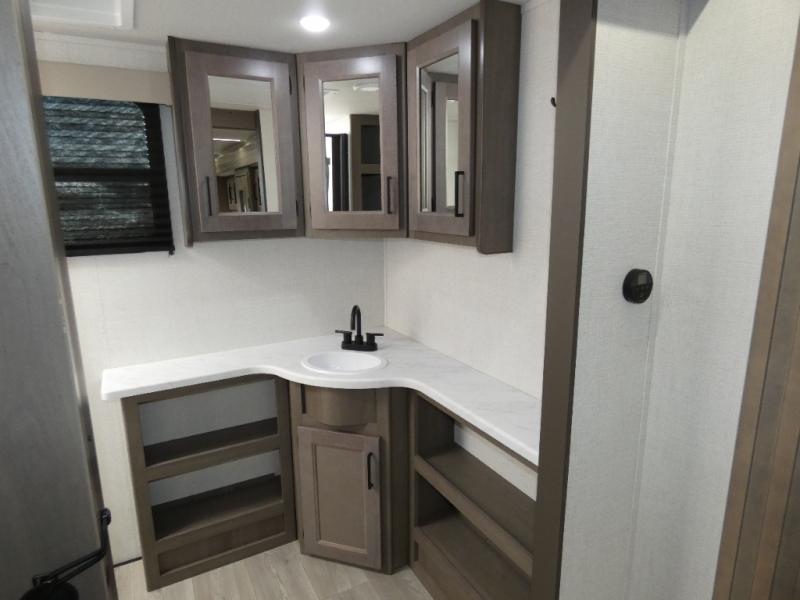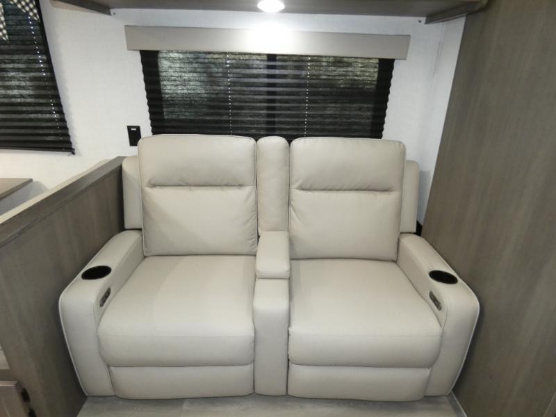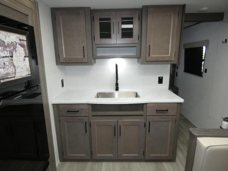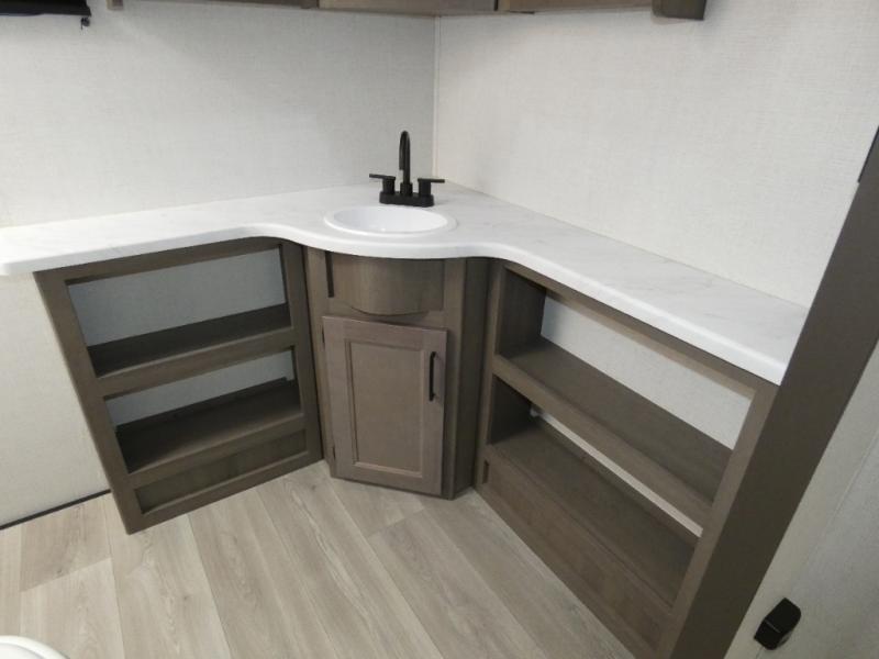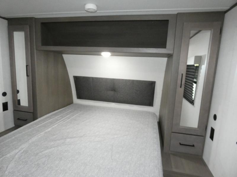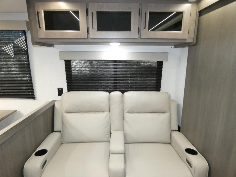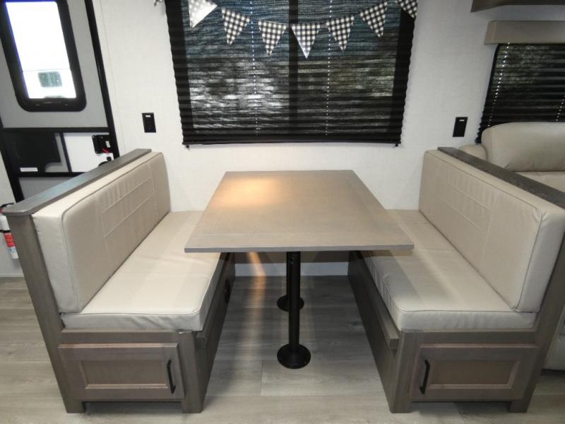 Your search for the perfect couple's trailer is over with this RV in tow! You will enjoy your own private bedroom up front with a queen bed, overhead storage, and TV prep if you choose to bring along your own television. The spacious full rear bath includes a linen closet and a walk-in shower to easily clean up each day. Relax on the theatre seating after a long day outdoors. The booth dinette can also be used for an overnight guest or two little ones. This model also includes plenty of storage space and plenty of counter space to prep and cook at-home meals!