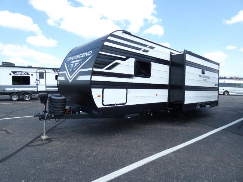 The customer-focused, quality-built Transcend Xplor travel trailers by Grand Design are your ticket to fun and adventure. You will appreciate the power tongue jack when it comes time to set up, as well as the all-in-one utility center and the detachable power cord with an LED light. These models include many outlets throughout, USB ports to charge your gadgets, and a JBL exterior speaker to listen to your favorite tunes. The interior of the Transcend Xplor will have you feeling right at home with upgraded residential furniture, residential countertops, residential cabinet doors, and the list goes on!