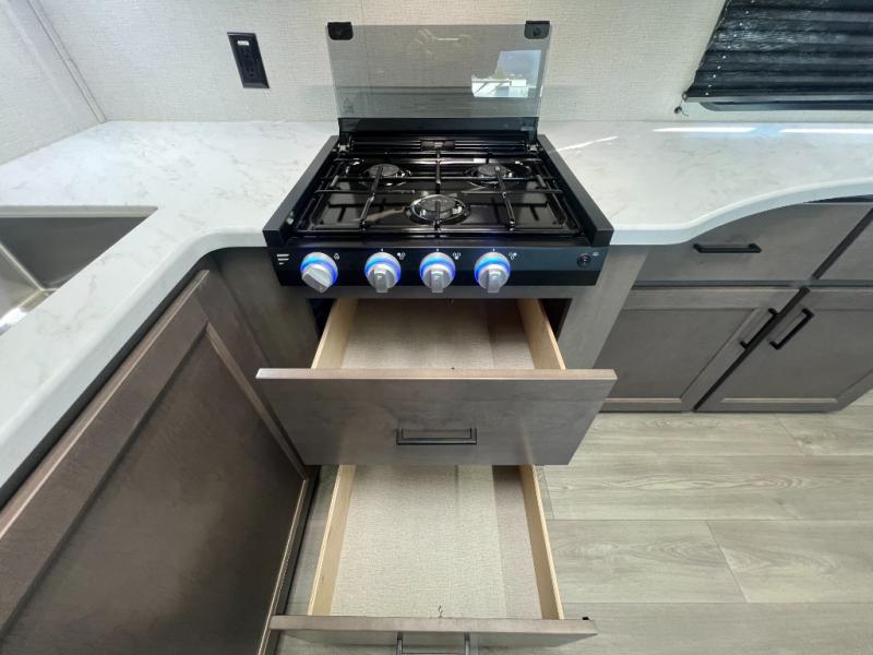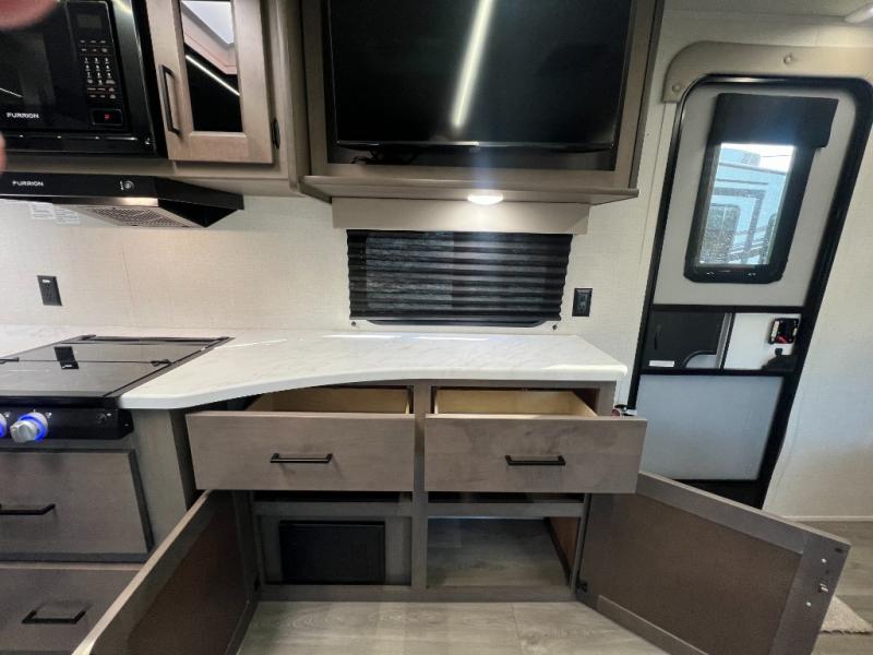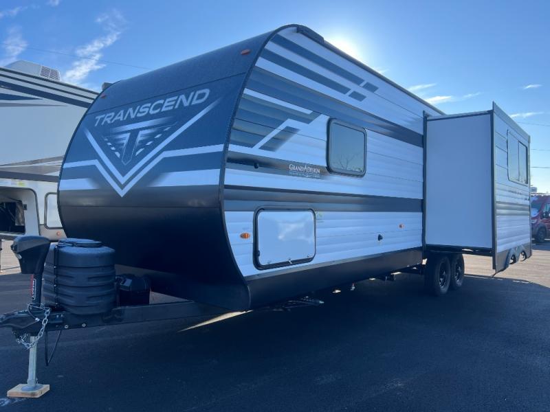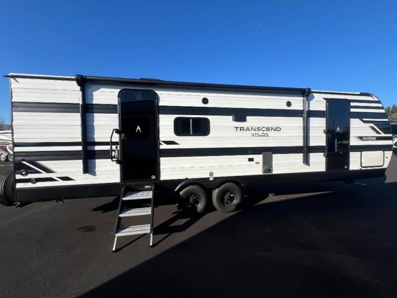 The customer-focused, quality-built Transcend Xplor travel trailers by Grand Design are your ticket to fun and adventure. You will appreciate the power tongue jack when it comes time to set up, as well as the all-in-one utility center and the detachable power cord with an LED light. These models include many outlets throughout, USB ports to charge your gadgets, and a JBL exterior speaker to listen to your favorite tunes. The interior of the Transcend Xplor will have you feeling right at home with upgraded residential furniture, residential countertops, residential cabinet doors, and the list goes on!