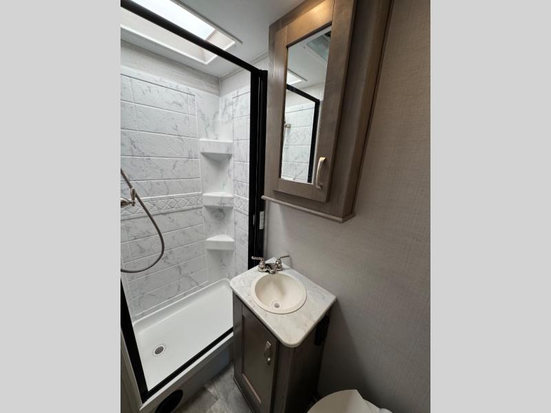 Each one of these Gulf Stream RV Conquest Class C gas motorhomes is built with a Cradle of Strength® on either the Ford E350 or E450 chassis depending on the model! Their construction also consists of a welded aluminum perimeter frame, an EPDM rubber roof, and high gloss white fiberglass sidewalls with Azdel substrate to prevent rotting. The included Conquest Luxury Package comes with vinyl flooring throughout for an easier clean, upgraded designer graphics, and a multimedia center with a 9" screen, Apple CarPlay and Android Auto and an AM/FM stereo. The exterior is just as accommodating with its hot and cold shower, 7,500 lb. hitch, electric awning with LED lights, and more!
