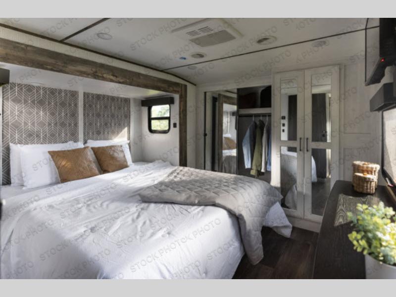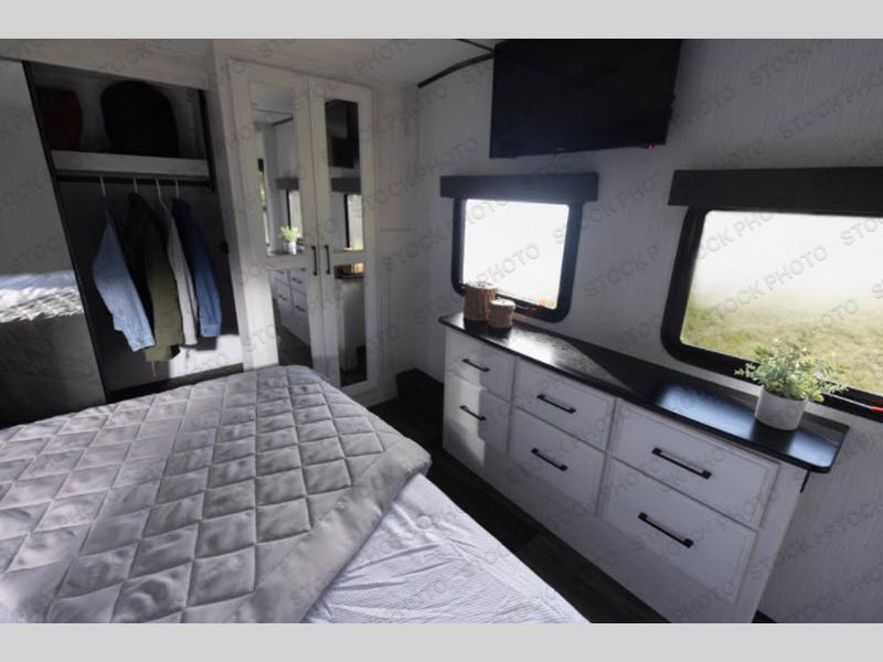 Each Bighorn Traveler fifth wheel by Heartland is constructed with lightweight Azdel laminated sidewalls, a walkable roof, and a heated and enclosed underbelly for an added layer of protection. The MORryde strut-assisted "Step Above" folding aluminum treat entry staircase will provide stability when entering your fifth wheel, and the MORryde CRE3000 rubber suspension will ensure smooth towing, especially on tougher terrain. Your electronics are welcome here with dual wireless charging ports and dual Bluetooth speaker ports in each model, and the "Barefoot Friendly" carpet-free flooring is both kid and pet-friendly. Some of the residential comforts you'll find in the Bighorn Traveler are the real wood drawer construction, the night roller shades, and the in-house milled and finished solid surface countertops throughout!