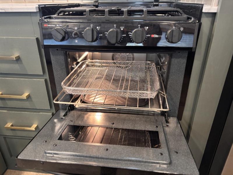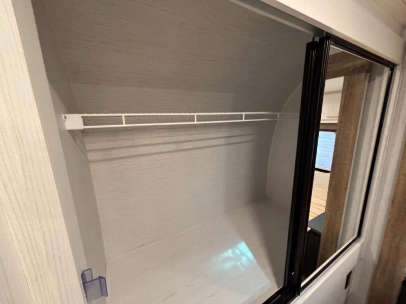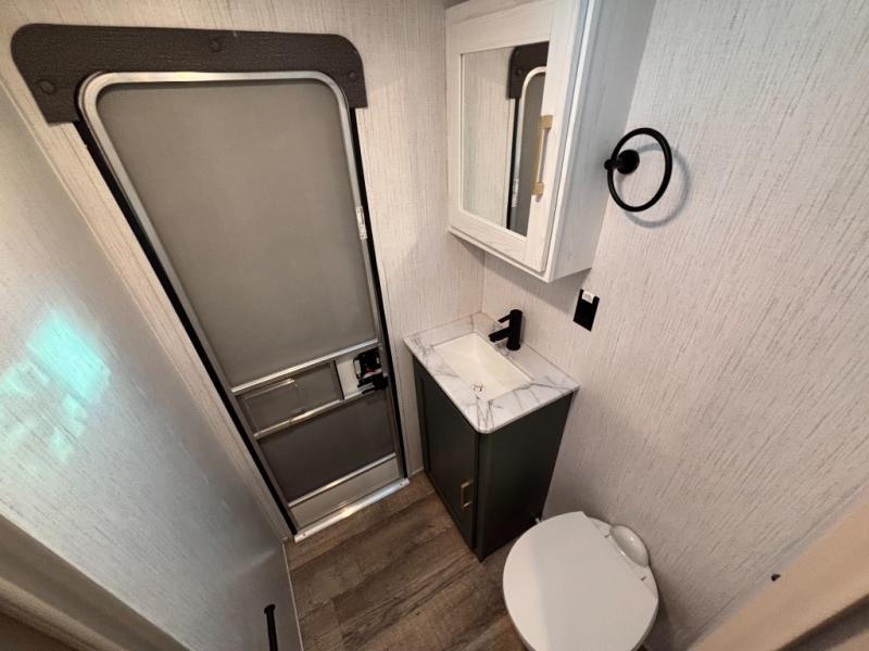There is convenience found all throughout this travel trailer! Starting with the dual entry doors with one of them leading directly into the half bathroom. The kiddos will have their own privacy with the rear private bunkhouse which has a set of bunk beds and a slide with a bunk bed over a sofa. You will enjoy your own privacy with the front private bedroom that has a queen bed slide across from a dresser, a sliding barn door, a front large wardrobe and even a closet that is prepped to add a washer and dryer to it. Meals can be made easy with the fully equipped kitchen which even has an air fryer oven, plus you can cook meals while breathing in fresh air with the outdoor kitchen. Everyone can gather together at the booth dinette for meals, games, and even transform it into an extra sleeping space. The sofa is a great place to wind down at night by the entertainment center with a 39" TV and fireplace!