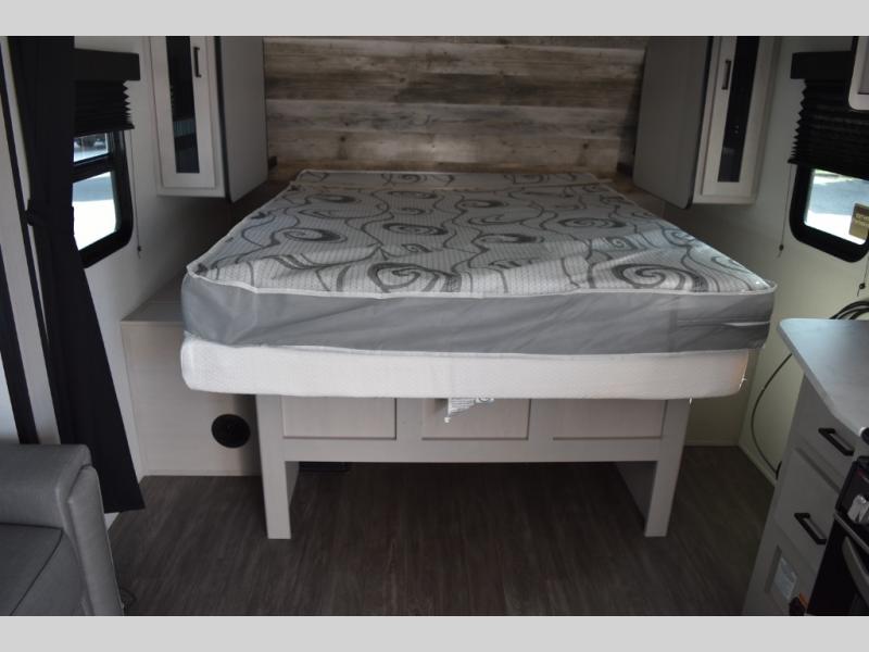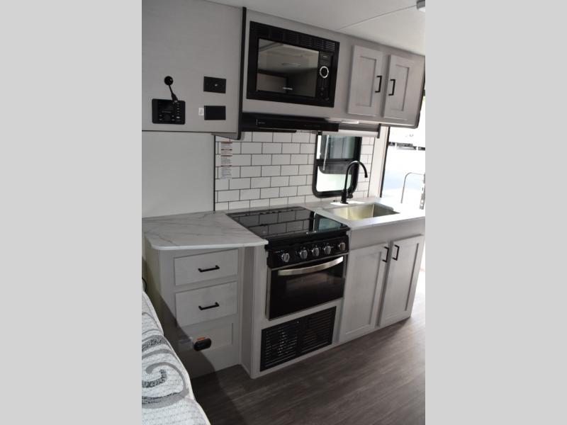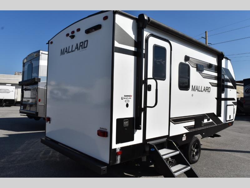 The Heartland Mallard travel trailer is quite impressive with its innovative features! The flip-down exterior steps and glow-in-the-dark graphics are some of the top exterior features, and the all-new Master Chef kitchen with Infinity edge countertops and a stainless steel undermount sink is one of the top interior features that will make camping life easier. The forced-air heated and enclosed underbelly is a great feature that protects your trailer from the outside weather, and the Wide Traxx axle system, leaf spring suspension, E-Z lube hubs, and aluminum rims all work together to give you a great ride to the campsite. The Mallard has also been prepped for a solar panel, Wi-Fi, and a back-up camera, and it also has a cable-ready hook-up.