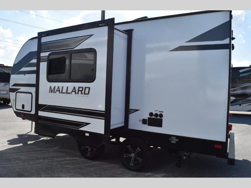 Grab a drink from the 8-cu. ft. refrigerator on your way out of this Mallard travel trailer to relax under the 12' power awning with LED lighting or take a walk around the campgrounds. You can easily grab your camp chairs from the Super King Kong-sized pass-through storage if you hadn't already brought them out, and when you get back, be sure to stop at the full bathroom to get cleaned up before making lunch. You can then dine at the sofa slide with a table, take a nap on the king bed, and do whatever is next on your camping list.