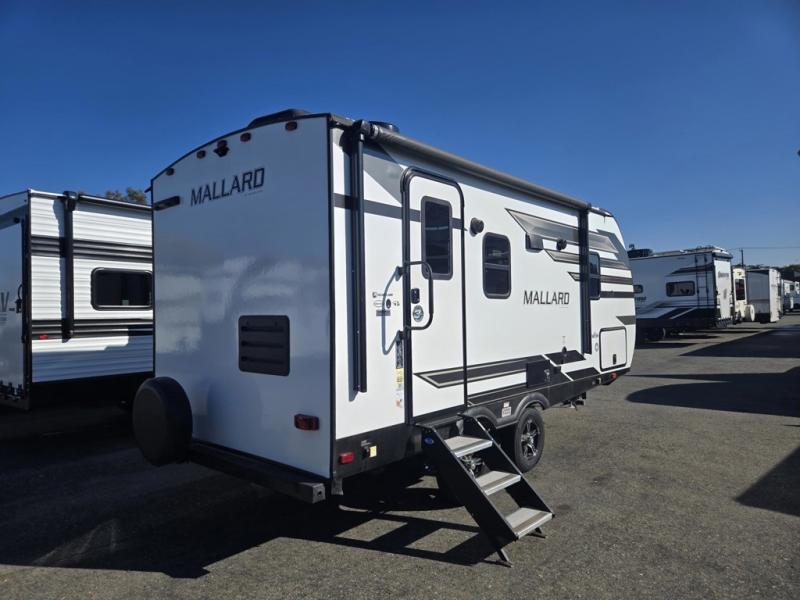 Grab a drink from the 8-cu. ft. refrigerator on your way out of this Mallard travel trailer to relax under the 12' power awning with LED lighting or take a walk around the campgrounds. You can easily grab your camp chairs from the Super King Kong-sized pass-through storage if you hadn't already brought them out, and when you get back, be sure to stop at the full bathroom to get cleaned up before making lunch. You can then dine at the sofa slide with a table, take a nap on the king bed, and do whatever is next on your camping list.