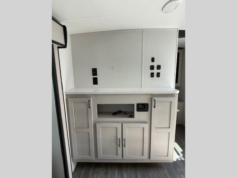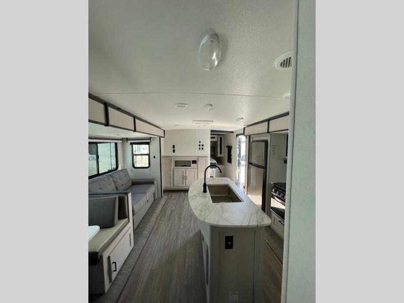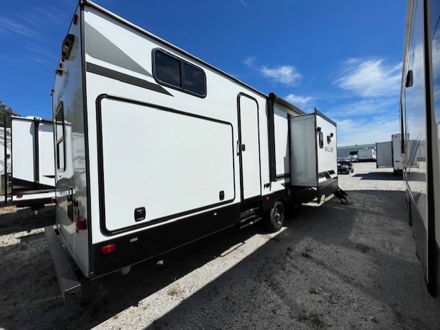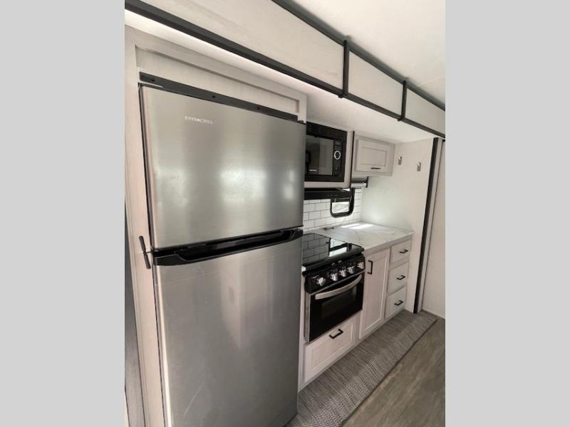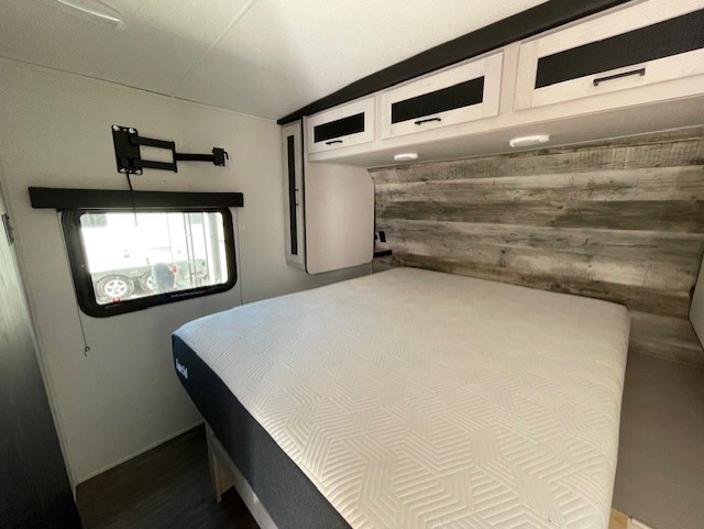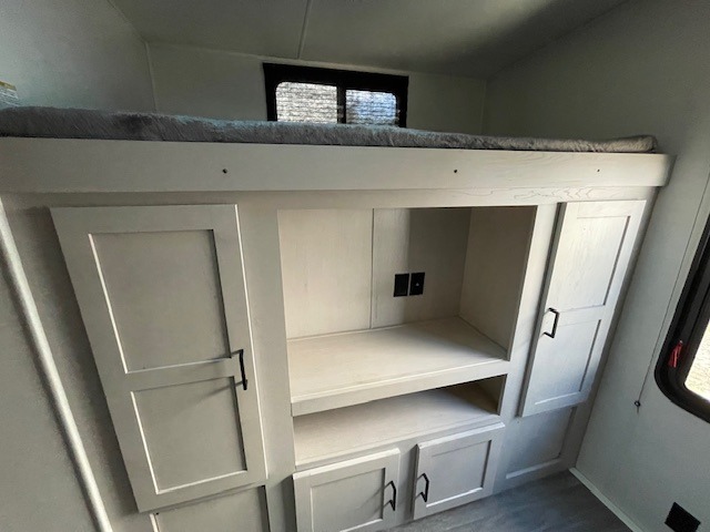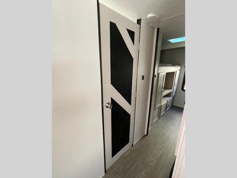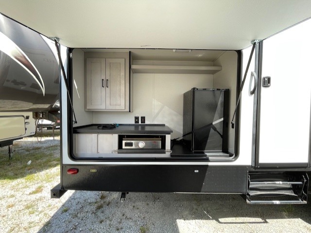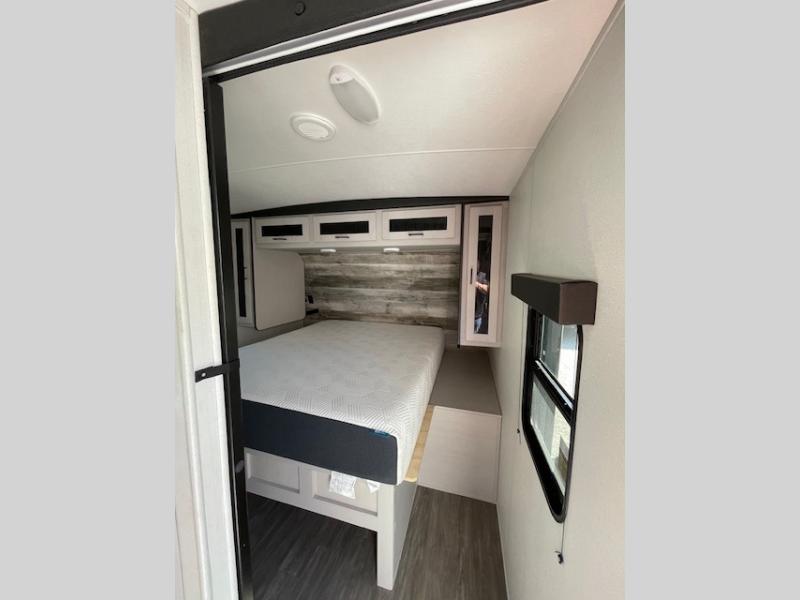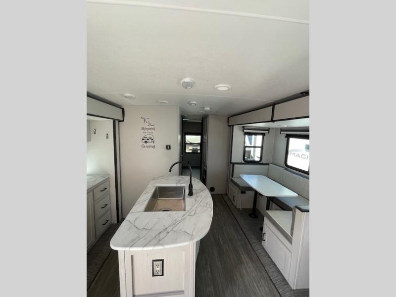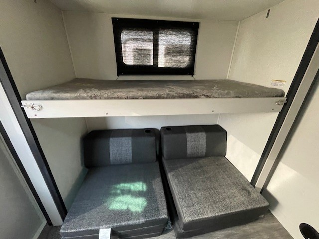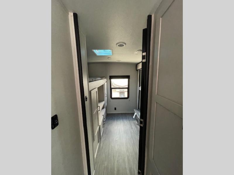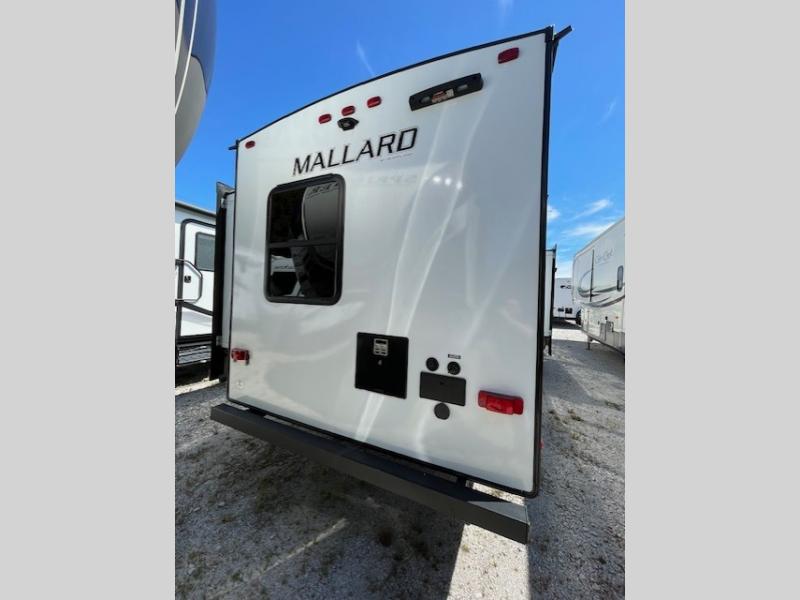 The rear private bunkhouse on this Mallard travel trailer provides triple bunk beds and a slide out offering more space to play indoors, and having dual entry in this trailer makes it easy to enter and exit to get back outside to make a meal on the outdoor kitchen or relax under the 18' power awning. Whipping up your favorite meals inside can be fun and easy with the complete kitchen including a center island which everyone will love. You will be able to retire to your own king bed with plenty of storage for your clothing and such, plus the exterior pass-through storage offers more space for the outdoor gear.