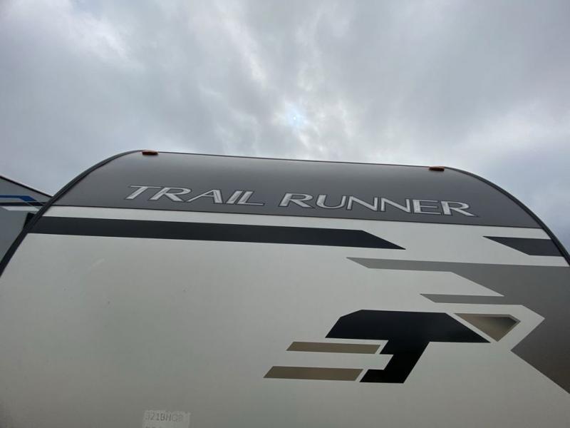 Paradise awaits at the end of the trail with one of these Heartland Trail Runner travel trailers! Experience better wind and water deflection, added strength, and a reduction of tongue weight with the hybrid aluminum front profile that has an aerodynamic radius front cage. A cambered structural steel I-beam frame holds them together and a heated enclosed underbelly protects the units vitals. There is an industry leading mammoth storage space of 57 cu. ft. pass-through storage so you can bring all of your outdoor gear with you. Roller shades in the main living area, woven flooring in all slide rooms, master suites with CPAP storage, and upgraded pressed counters give you the at-home feel you desire. Come find the perfect model for you today!
