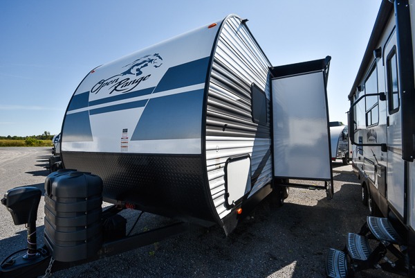 The affordable Open Range Conventional travel trailers by Highland Ridge are ready to meet your camping needs! You will appreciate the durable Magnum Roof system, plus each model is constructed with black front diamond plate protection, 5/8" main floor decking, and self-adjusting electric brakes with E-Z Lube axles for smooth towing. The 81" interior height means you won't feel cramped when relaxing with friends and family, and the residential vinyl flooring throughout is easy to clean, which will be perfect if you're camping with little ones or pets. These models also include an AM/FM/Bluetooth radio with indoor/outdoor speakers, a digital TV antenna that will go perfectly with the optional Smart TV, plus a 13,500 BTU roof mounted A/C to keep you cool on those hot summer months.