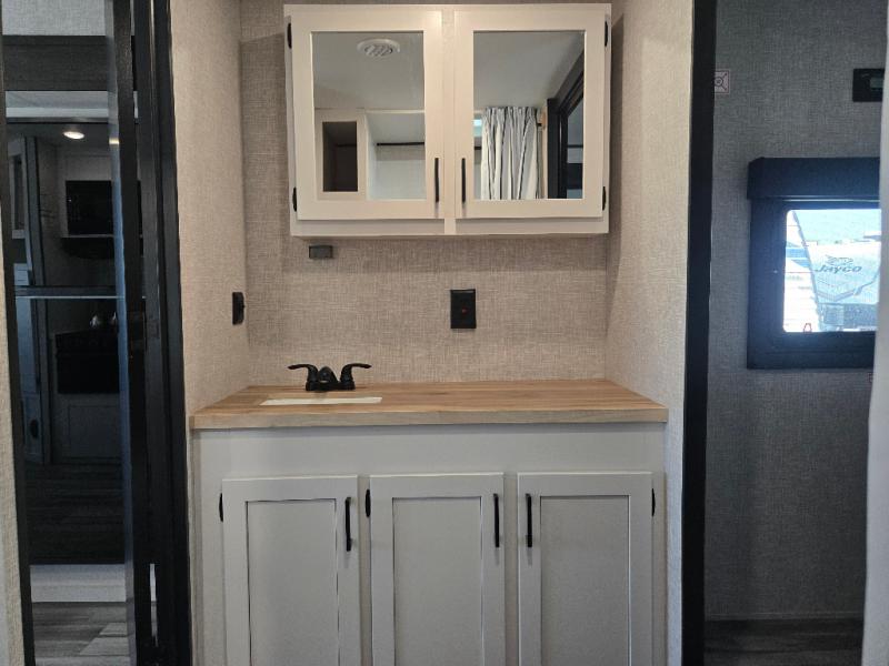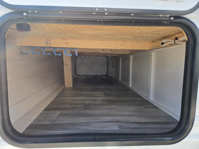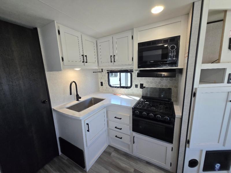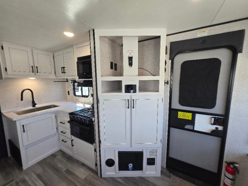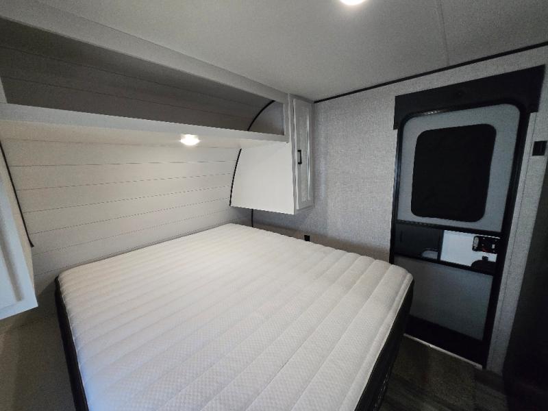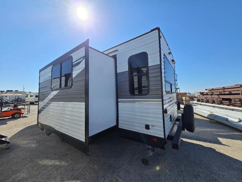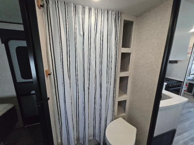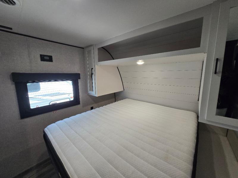 Eat, sleep, play, and relax in this travel trailer perfect for six! You will love to visit with friends on the tri-fold sofa and U-shaped dinette in the rear living area, and there is an entertainment center here where you can add an optional Smart TV. Freshen up in the spacious walk-through bath that includes a large shower and tons of counter space, and the front master bedroom will feel just like home. Here, you'll find an easy lift bed with storage, dual wardrobes, and your own exterior entry door!