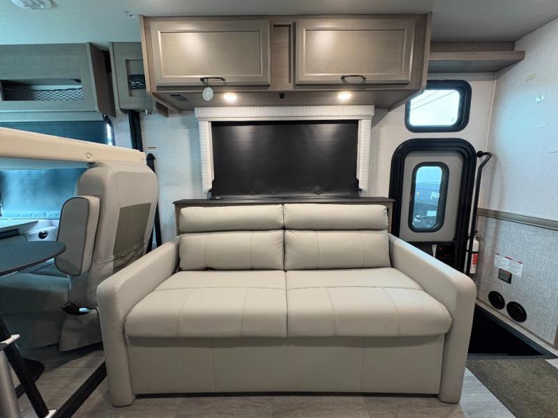 Enjoy a home on wheels with this motorhome! It features a rear corner private bedroom with a Serenity Series 72" x 74" king bed slide to lay your head at night and an LED TV for a comfortable movie night. The jackknife sofa offers a comfortable place to sleep once converted and the Hide-A-Loft drop down electric bed is another comfortable place to two others to sleep. You can even convert the Dream Dinette when you're not using it to enjoy a meal or play a card game. Everyone can freshen up in the rear corner bathroom with the 34" x 22" shower with a skylight above for natural lighting. A few cab conveniences that will make your traveling go smoother include an automotive style dash with work station, electronic cruise control, and a Sony stereo with AM/FM/Bluetooth and a backup camera screen!