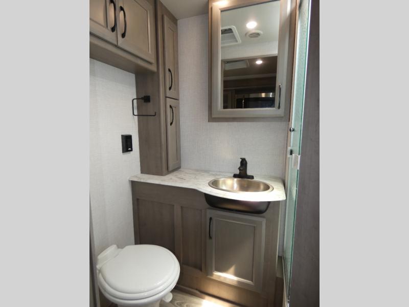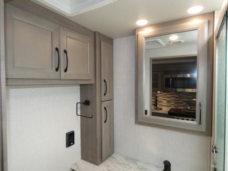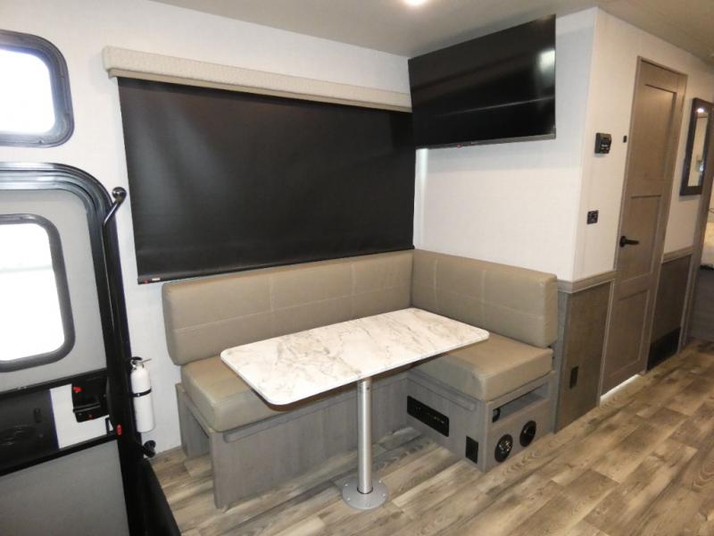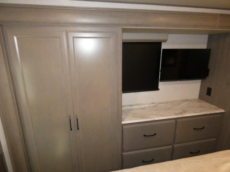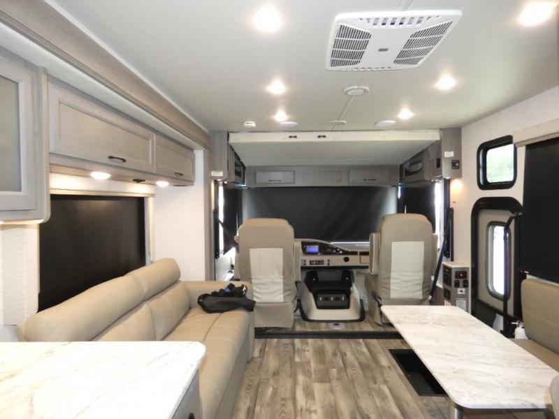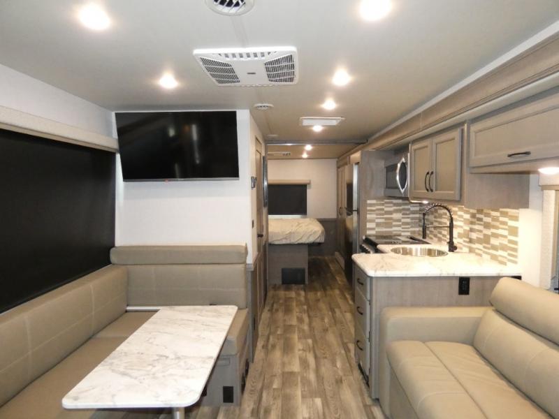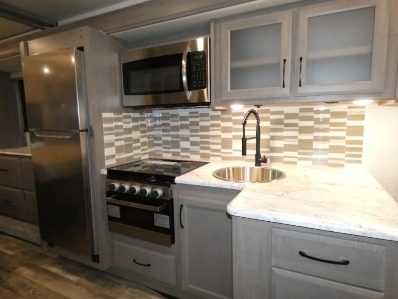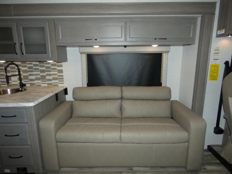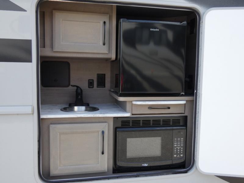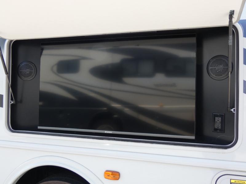 Take the grandkids or a few friends on a road trip of a lifetime with this motorhome! The Hide-A-Loft drop down electric bed is big enough for two to sleep on and the jackknife sofa can transform into a sleeping space too. There is even a rear private bedroom with a Serenity Series 72" x 75" king bed across from a wardrobe and a dresser with a LED TV. The chef can prepare their best meals either inside with the three burner cooktop or breathe in some fresh air while cooking at the exterior kitchenette. You can even watch the big game outside with the exterior entertainment center with a LED TV. Enjoy your meals at the L-shaped dinette with an LED TV next to it and freshen up in the full bathroom with the 34" x 22" shower with a skylight above for natural lighting!