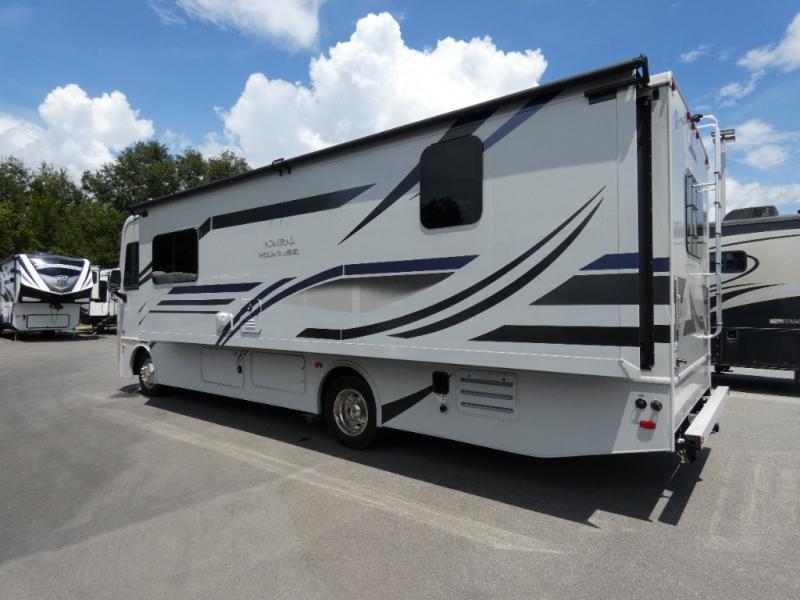 Enter the world of luxury travel with any one of these Holiday Rambler Admiral Class A gas motorhomes! Settle in with the four point fully automatic hydraulic leveling jacks and store all of your gear in the exterior pass-through storage. An automotive, bonded one-piece windshield gives you a clear view of your surroundings, an aerodynamic front cap with hood creates better gas mileage, and automotive headlights help you to see clearly at night. The all new electronic instrument panel lets you control parts of your unit at the touch of a finger. A ducted A/C system will keep you cool on those hot summer days and the power ceiling vents will rid your unit of any unwanted air. You will have plenty of entertainment with the exterior LED TV, the interior TV, and the Sony stereo with AM/FM/Bluetooth. Come find your perfect model today!