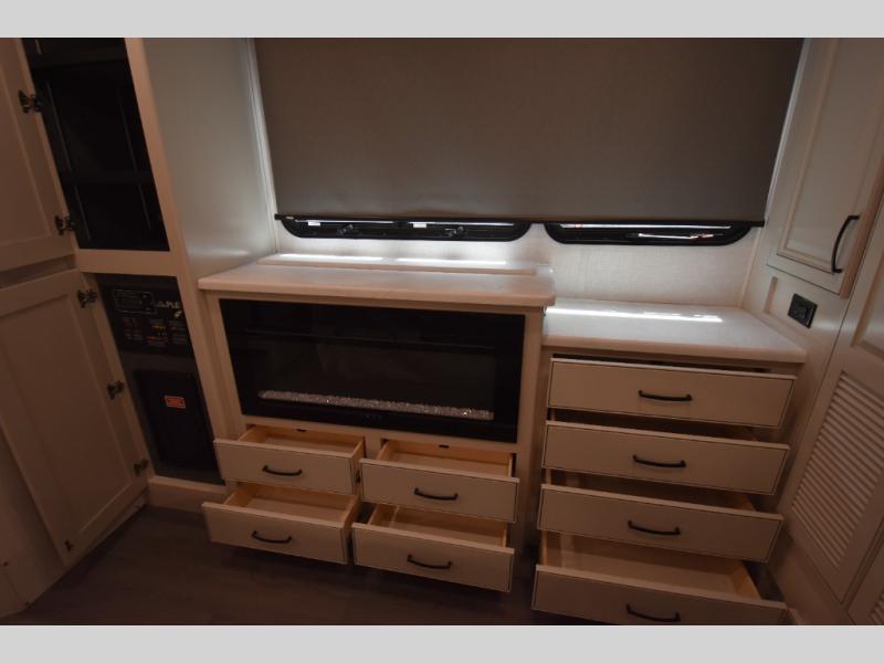 This Class A diesel pusher is designed with high-end finishes, innovative technology, and a robust chassis to provide a smooth, comfortable, and feature-packed experience wherever the road takes you.