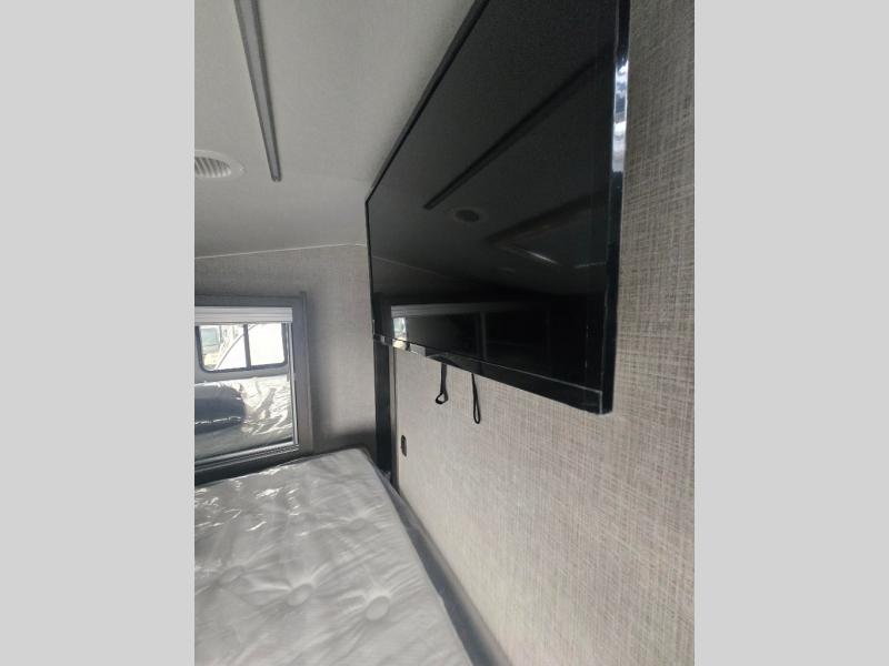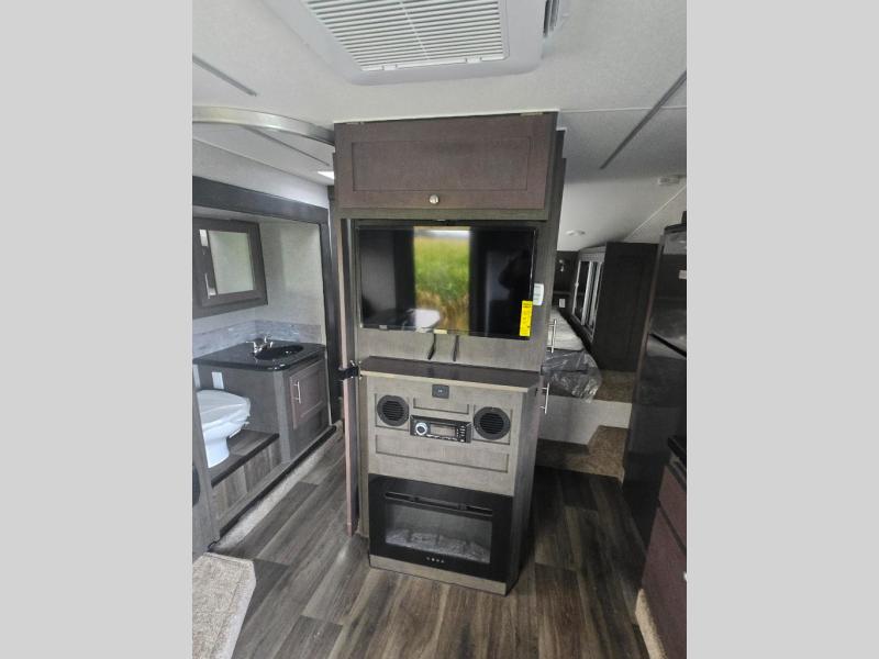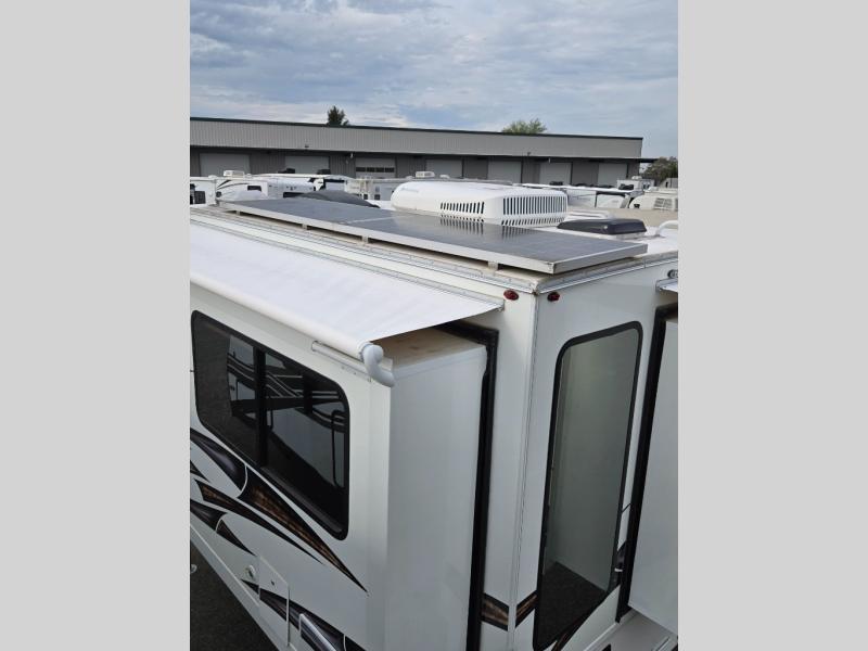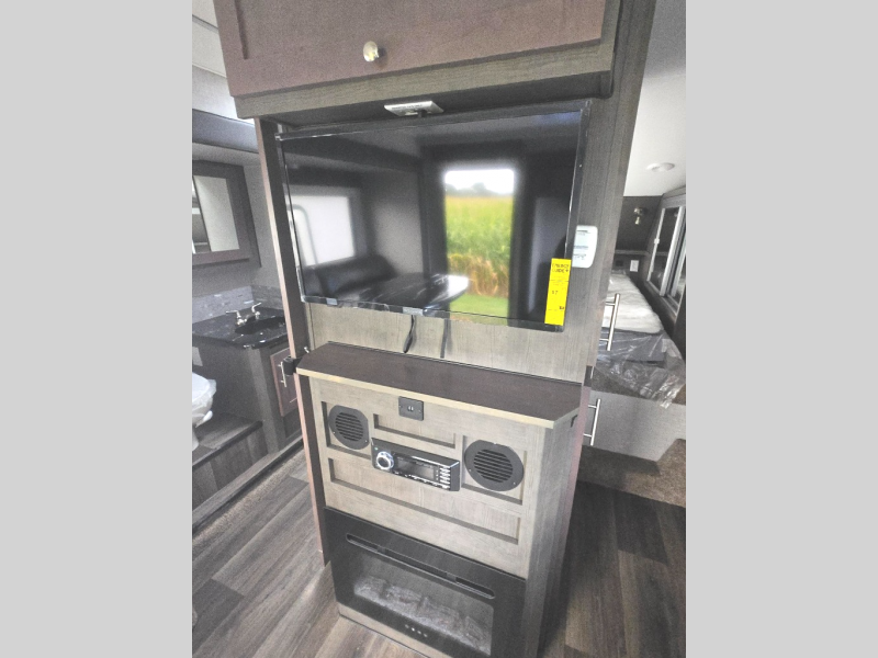Luxury, convenience and outdoor adventure are just inside and around the corner in this truck camper! There is a queen bed or king option, dual wardrobes and dual entrances into the bedroom, and a second wardrobe for your clothes. You can dine, play games and work at the U-shaped dinette, plus relax on the sofa slide while watching your favorite shows on the flat screen TV above a fireplace for a cozy evening. The full bathroom will keep you refreshed, the pantry allows you to store lots of goodies, and the triple slides give you the interior space you are looking for.