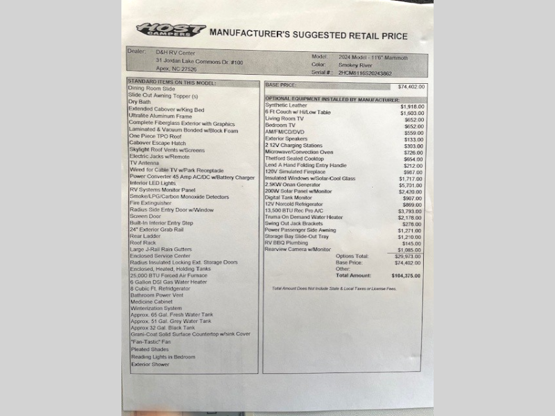 They went above and beyond to make a wonderful experience buying our camper. From sales to the guys doing the walk through to finance. I would highly recommend them to anyone. Very easy transaction. A+ rating in our book. Thank you for everything. - Jason