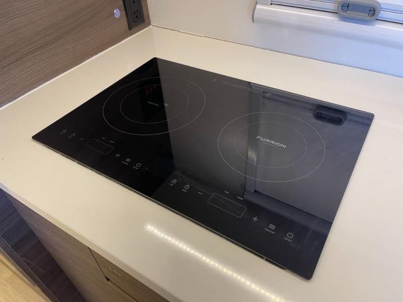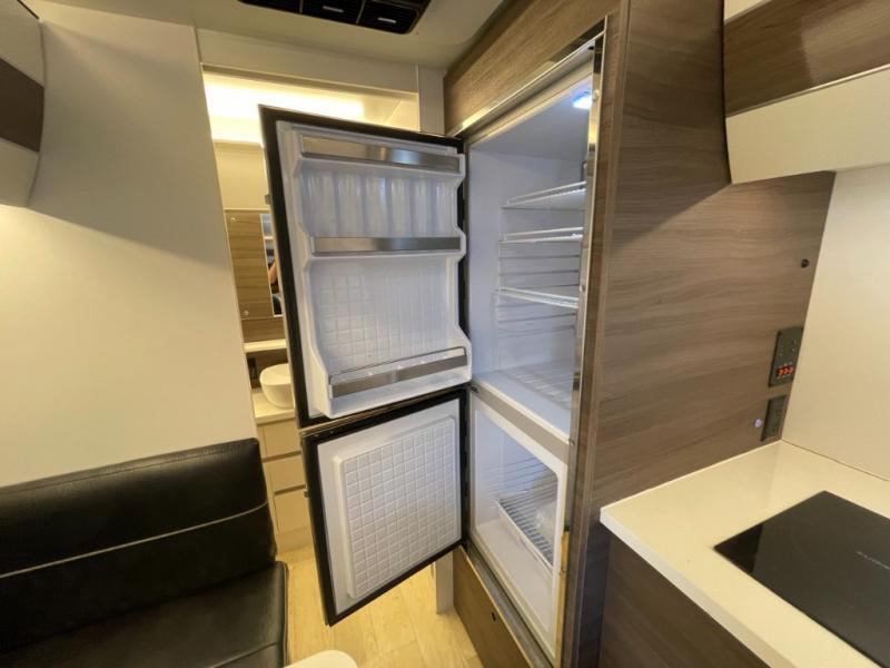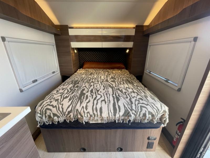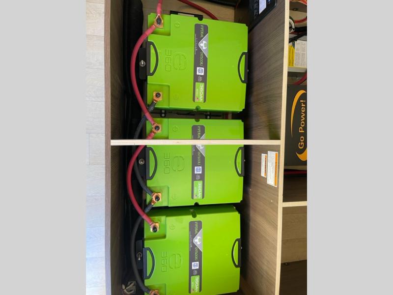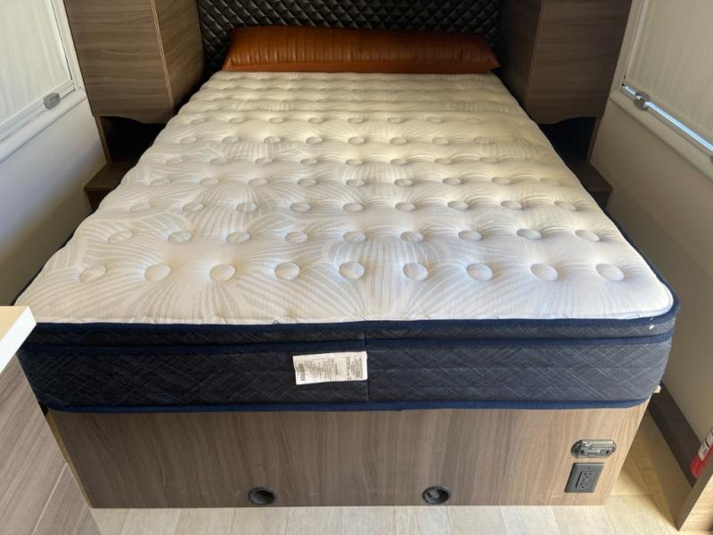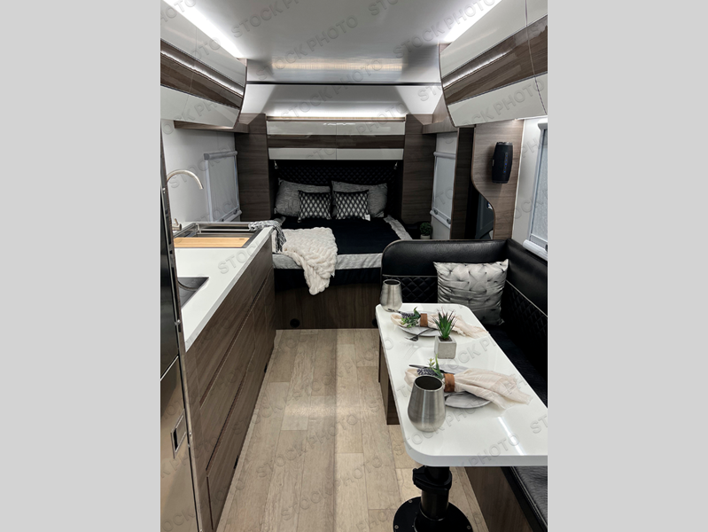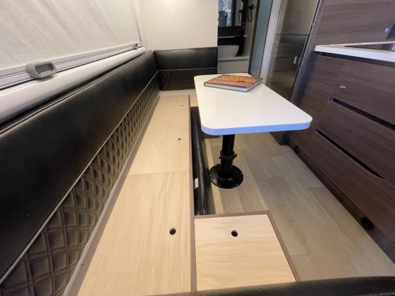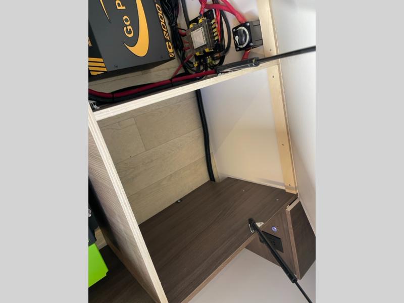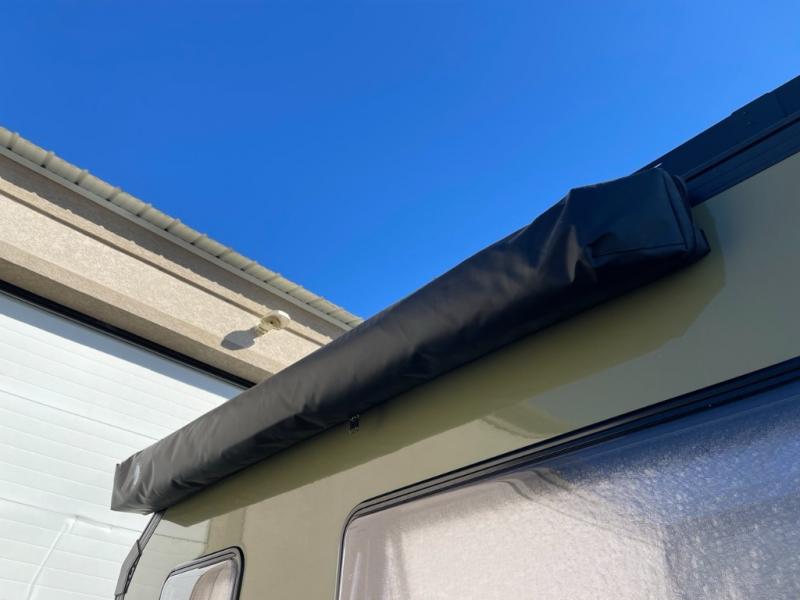 Make each camping trip count in this travel! When you get to your destination you can unload your gear from the exterior pass-through storage, then set up the 22' 6" batwing style awning. There is a full kitchen with a cooktop inside to prepare lunch on, plus a 6.9 cu. ft. refrigerator for food storage and a sink to clean up. Head out to find a trail or two, then come back to clean up in the full rear bath that includes a shower and a dry flush toilet, which eliminates the need for a black tank. The full size walk-around bed (RV full) will provide a great night's rest, and there is overhead storage space on each side of the bed for convenience.