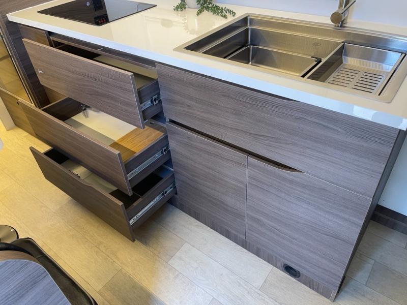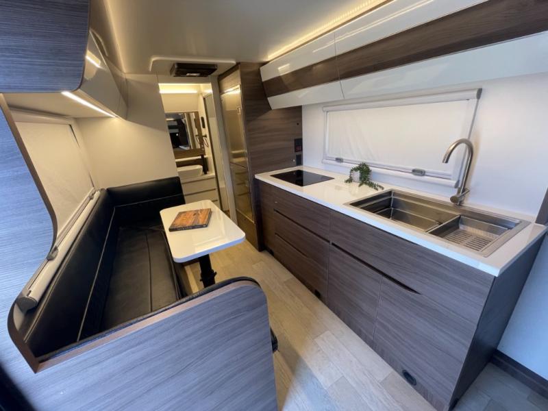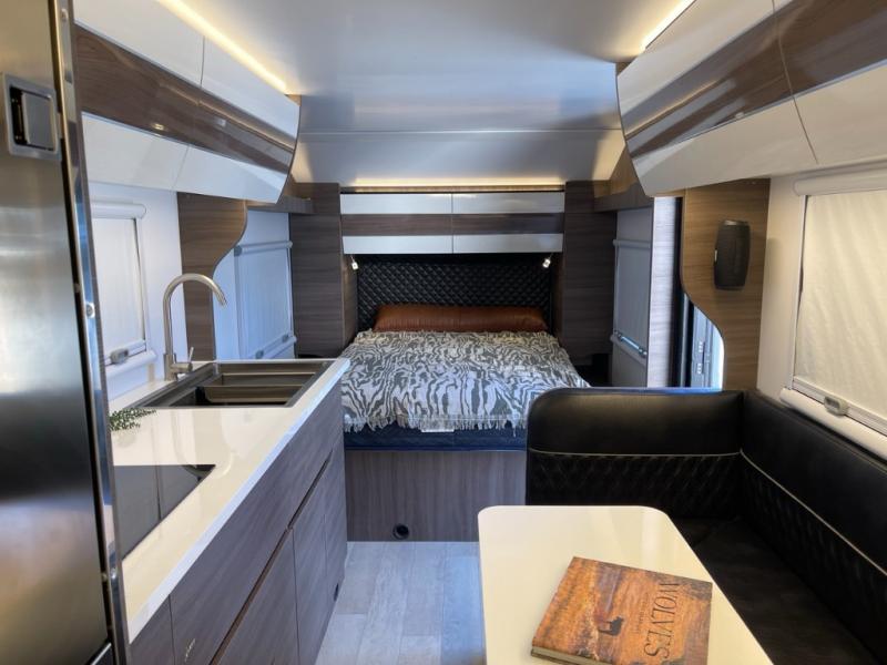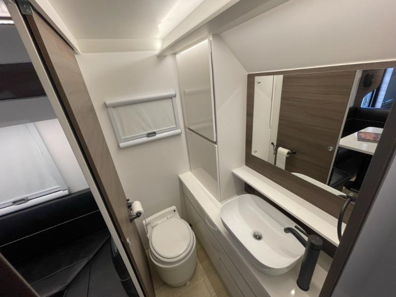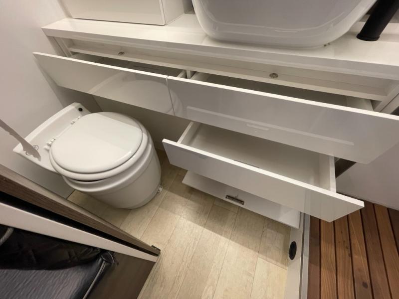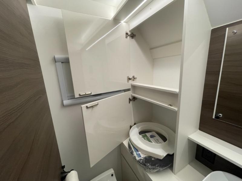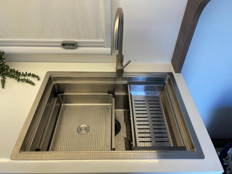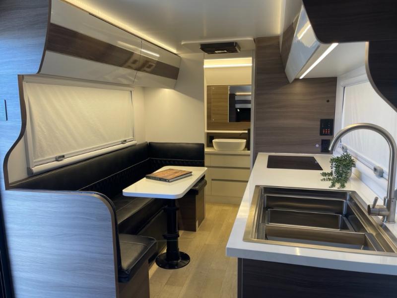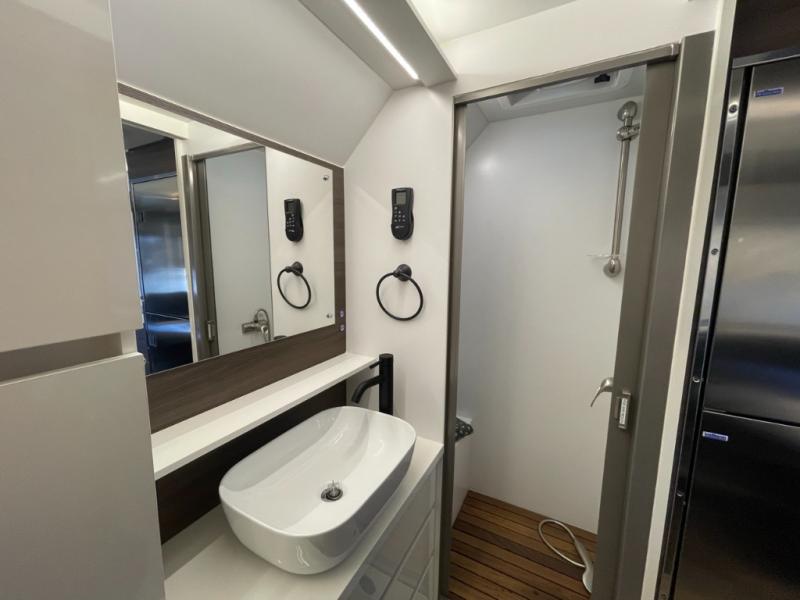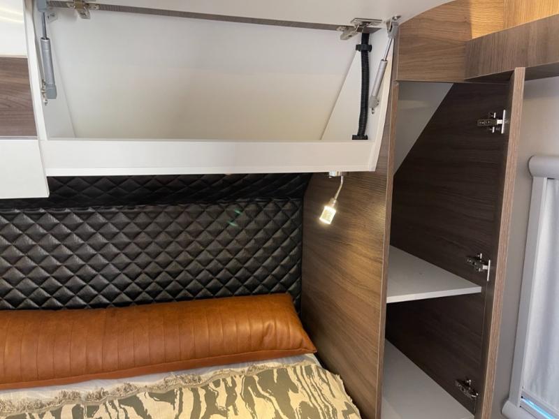 Make each camping trip count in this travel! When you get to your destination you can unload your gear from the exterior pass-through storage, then set up the 22' 6" batwing style awning. There is a full kitchen with a cooktop inside to prepare lunch on, plus a 6.9 cu. ft. refrigerator for food storage and a sink to clean up. Head out to find a trail or two, then come back to clean up in the full rear bath that includes a shower and a dry flush toilet, which eliminates the need for a black tank. The full size walk-around bed (RV full) will provide a great night's rest, and there is overhead storage space on each side of the bed for convenience.