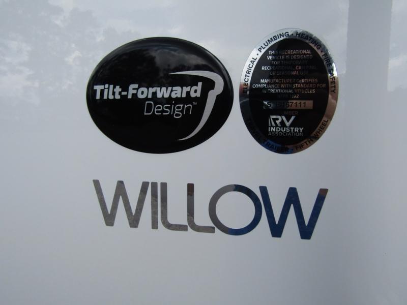 Pack your bags for a new adventure in this Willow travel trailer. You and your spouse or camping friend will love the natural light that streams in from the panoramic windows as you relax on the U-shaped dinette. Prepare meals each day on the two burner stainless steel cooktop or use the convection microwave, and you'll find plenty of overhead cabinets for all your necessities. This model features a private toilet and sink, with the shower right across the hall so two people can freshen up at once. When it's time to call it a night, you can rest comfortably on the 2 Twin , and the 32" bedroom TV will allow you to watch a late-night movie in bed!