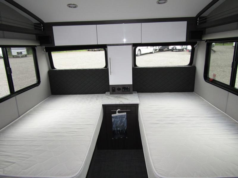 This model also has a dry weight that ranges from 5,650-5,850 lbs., a tongue weight between 725-790 lbs., and a carrying capacity between 1,650-1,850 lbs. You may also like to choose the optional Rover Package that includes a 3" lift, an aluminum tube rear bumper, rugged decals, and more!