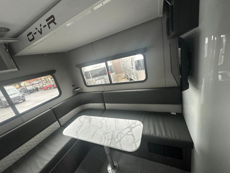 The O-R-V travel trailers and toy hauler by inTech RV allow you to experience adventure off the beaten path with its rugged exterior and lightweight construction provided by the all-aluminum fully welded cage frame. The power tongue jack will make setting up camp a breeze, plus there is a fold-away double entry step and exterior lighting for added convenience. Inside, you'll find a large farmhouse style sink, a MaxxAir vent for ventilation, plus infinity woven flooring. There is a Bluetooth stereo with four speakers and a 32" Smart TV included with each model, plus USB and 110V outlets to keep your electronics charged and ready to go. Further customize your O-V-R by adding the optional power awning or the optional Off-Grid Package with 400 watts of solar power, 20 amp hours of lithium batteries, and a 2,000 watt inverter!