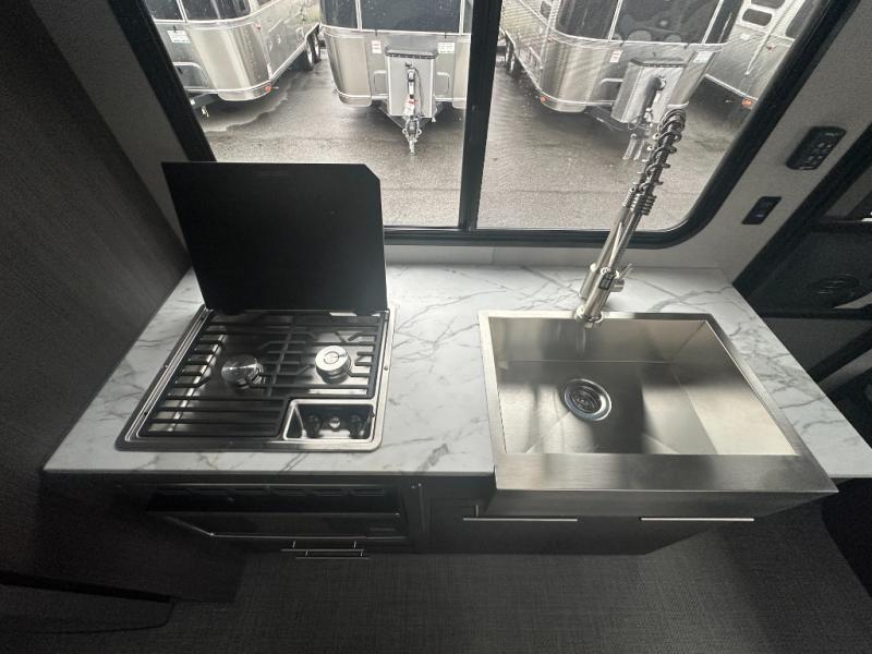 Plan to see it all in this rugged travel trailer with L-shaped dinette. This unit includes the optional drop-down bunk and twin beds in place of the queen bed up front! The wet bath allows you to easily freshen up each day, and the chef of your group will love this O-V-R kitchen. Here, you'll find a two burner stainless steel cooktop, a convection microwave, plus a 10 cu. ft. 12V refrigerator for perishables. This model also includes plenty of storage spaces, including four exterior storage compartments, five cubbies, plus a pantry cabinet just for snacks. You may want to add the optional slide out exterior kitchen and optional exterior refrigerator for the cook who loves making breakfast outdoors, or add the optional 3.6kW LP generator that will pair great with the optional Off-Grid Package!