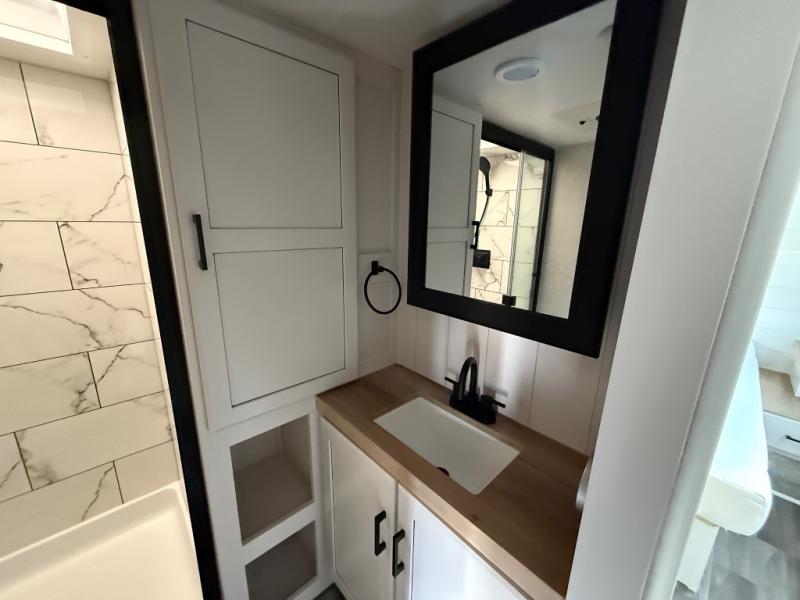 With any Eagle HT fifth wheel by Jayco you will enjoy a smooth drive thanks to the 4 Star Handling Package, Goodyear Endurance tires, and MORryde CRE-3000 rubberized suspension. The Customer Value Package includes amenities that are sure to make camping easier than ever, like the 60K on-demand water heater, Keyed-Alike lock system, electric awning with integrated LED lights, and more. Handcrafted and glazed door/drawer fronts will make your space feel more like home, along with residential vinyl flooring throughout, motion activated LED lights, and blackout roller shades with reflective side throughout to keep the sun out when you want to sleep in. The HELIX Cooling System features Jayco's exclusive insulated dual duct design, directional and closeable A/C vents, and larger return air vents with user friendly filters to keep your crew comfortable all summer long. Choose an entry-level Eagle HT fifth wheel today!