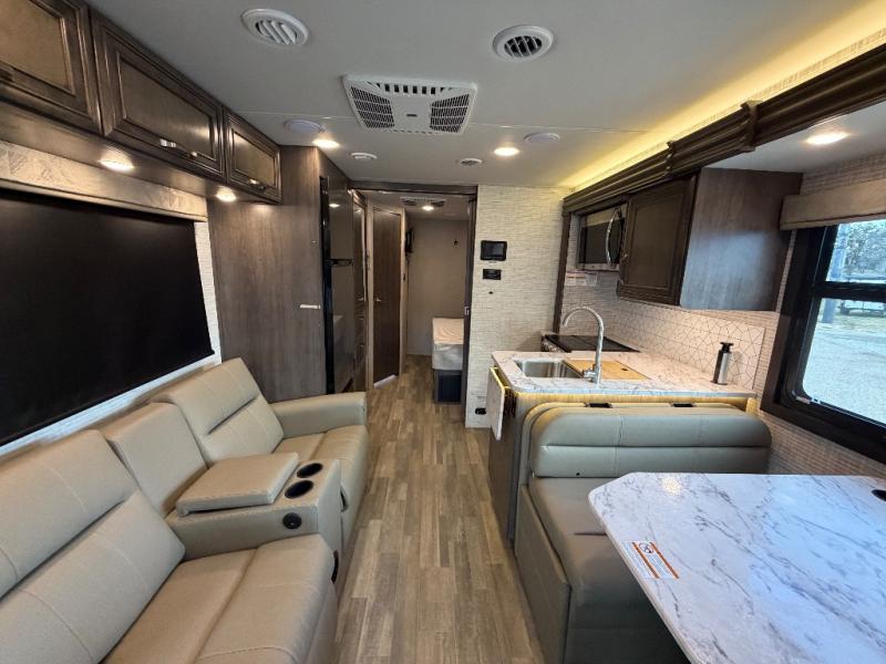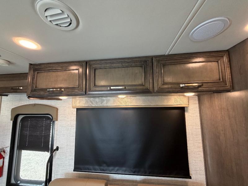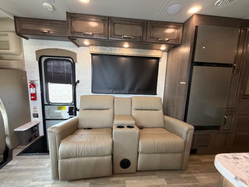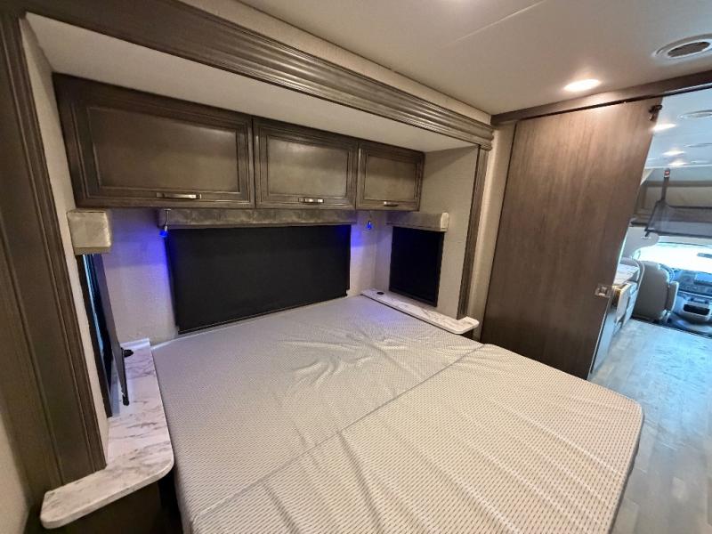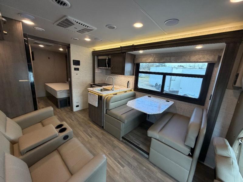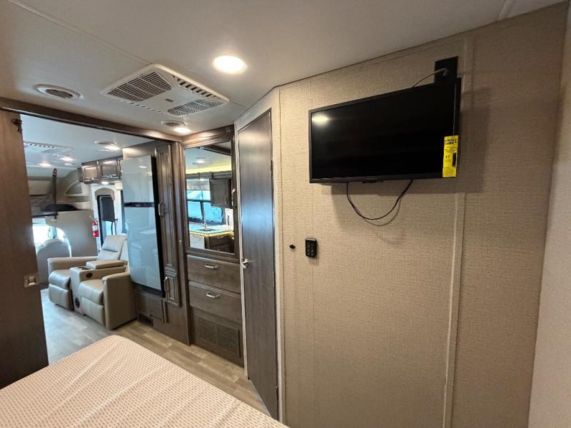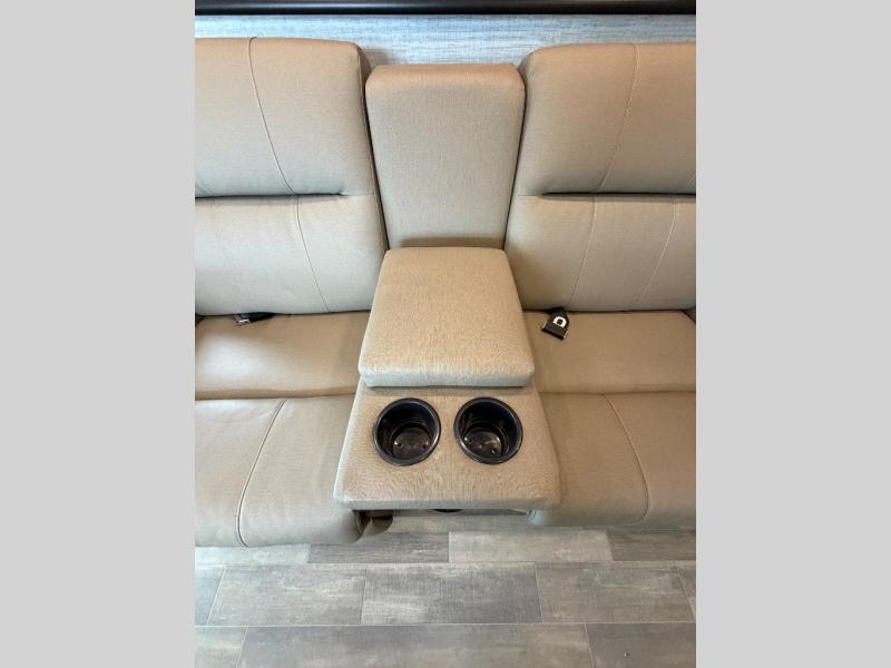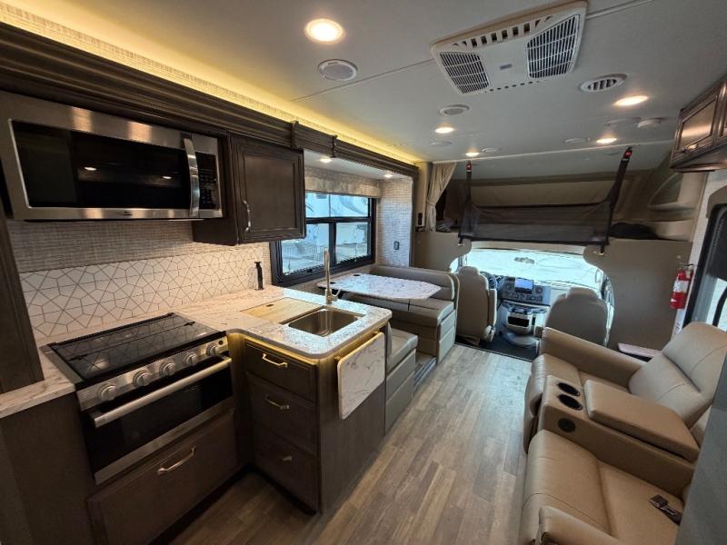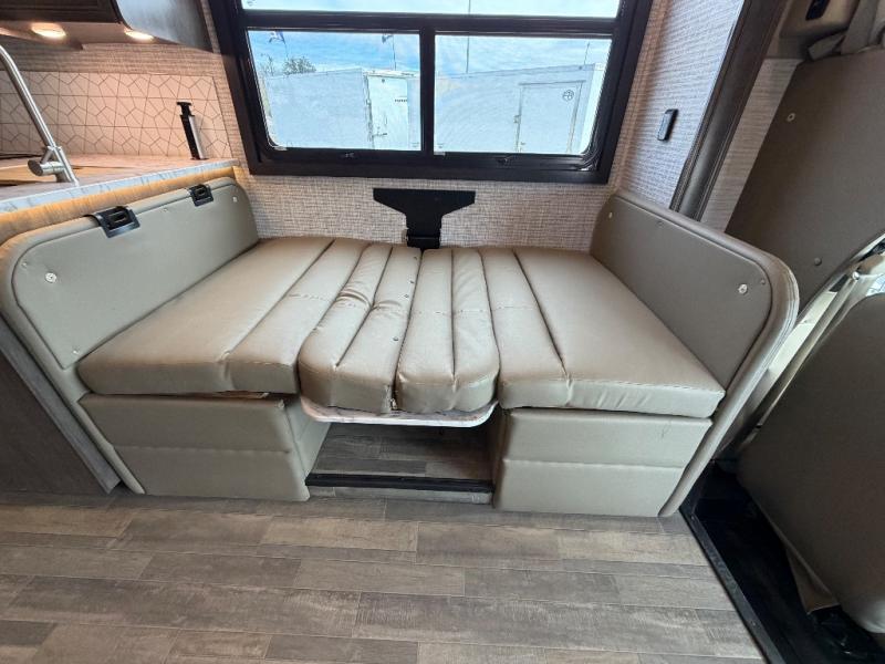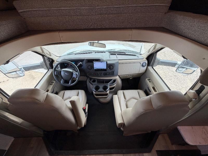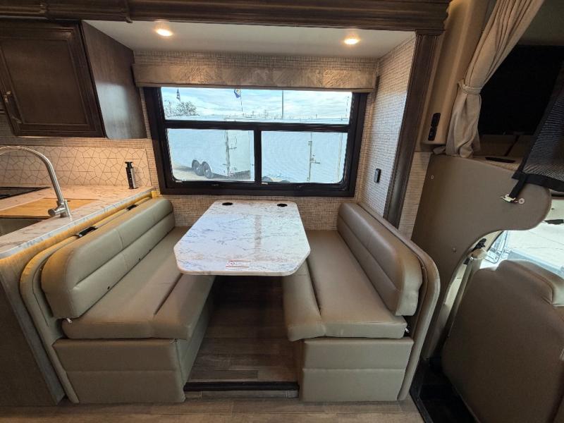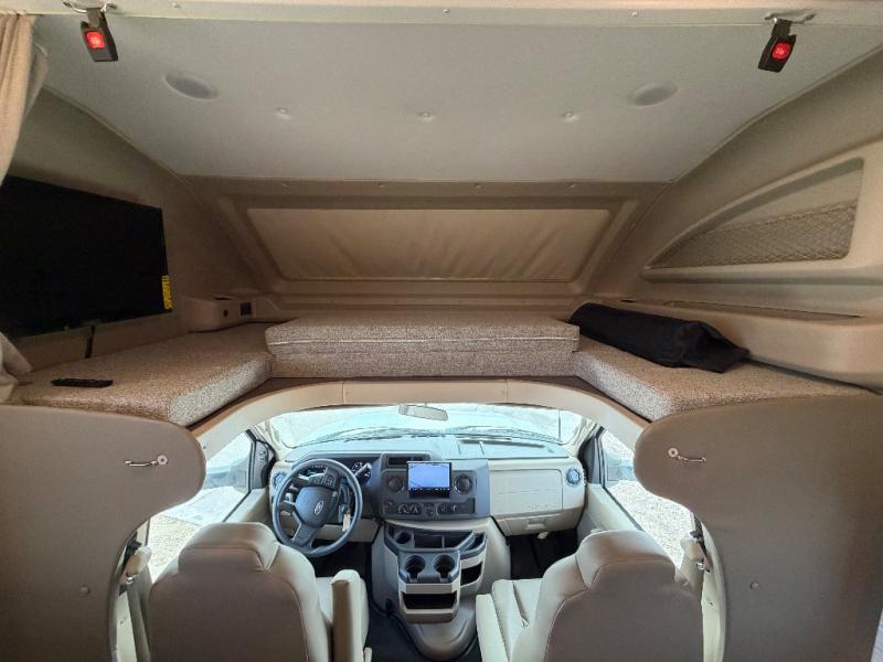 Trips across state lines just got sweeter in this motorhome for five to six. The swivel captain's seats can become a part of the living area once you park, and your guests can get comfortable on the 42" x 70" booth dinette or 68" jackknife sofa. There is a cab-over bunk the kids will love, and the LED HD Smart TV will allow you to enjoy movies. The chef of your group can prepare meals on the Furrion all-in-one cooktop and oven, and leftovers can go in the 10 cu. ft. 12V refrigerator. You will feel right at home in the bedroom suite with its king bed slide out, large wardrobe, and access to the rear corner bathroom. Get started on your getaway today in this cozy Class C motorhome!