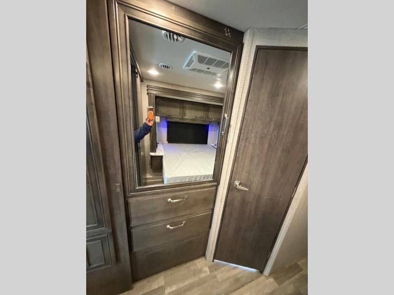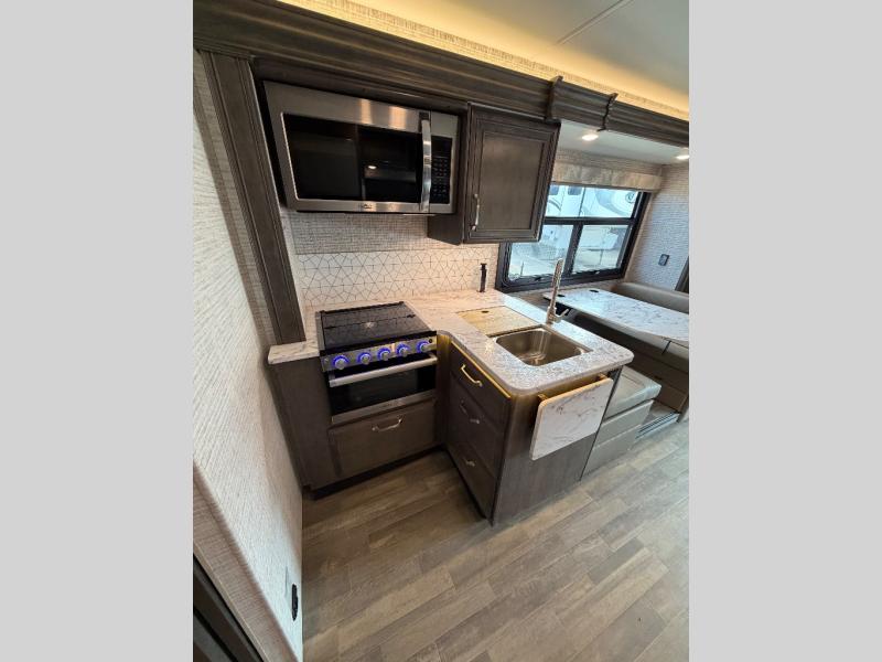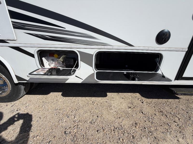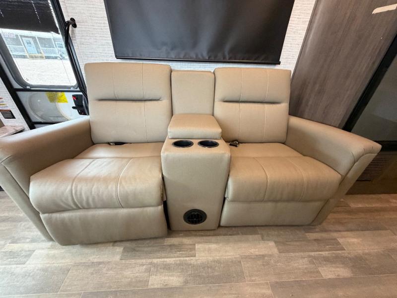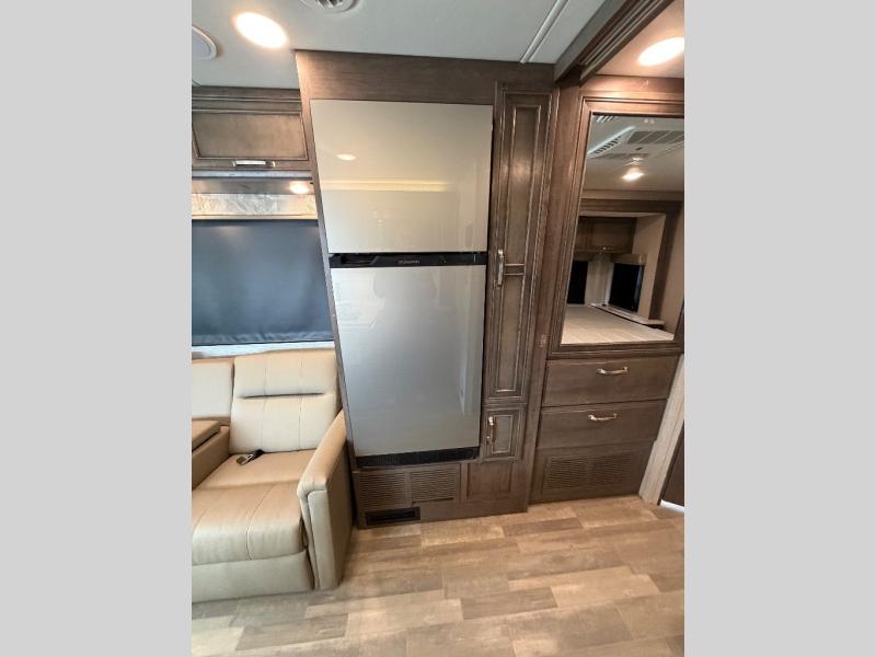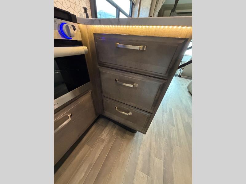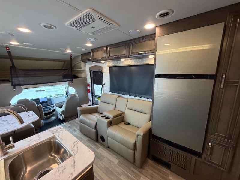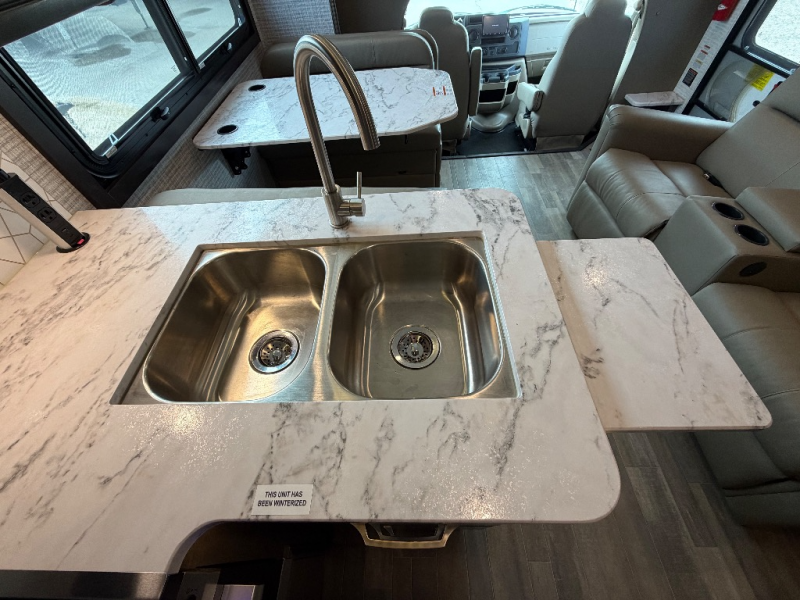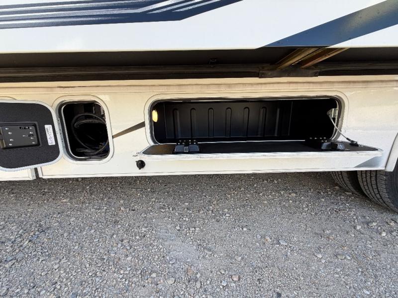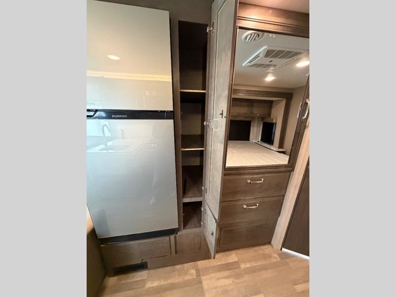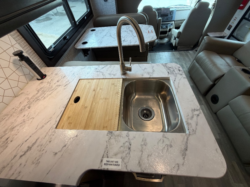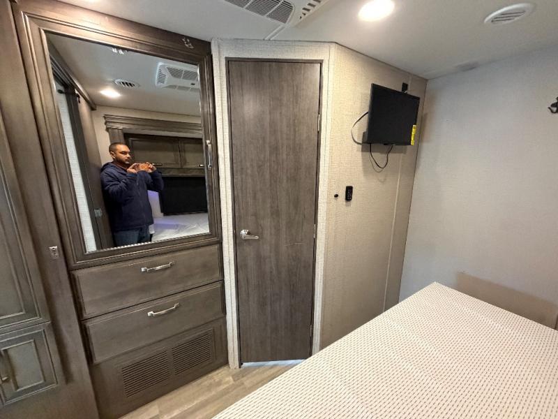 Trips across state lines just got sweeter in this motorhome for five to six. The swivel captain's seats can become a part of the living area once you park, and your guests can get comfortable on the 42" x 70" booth dinette or 68" jackknife sofa. There is a cab-over bunk the kids will love, and the LED HD Smart TV will allow you to enjoy movies. The chef of your group can prepare meals on the Furrion all-in-one cooktop and oven, and leftovers can go in the 10 cu. ft. 12V refrigerator. You will feel right at home in the bedroom suite with its king bed slide out, large wardrobe, and access to the rear corner bathroom. Get started on your getaway today in this cozy Class C motorhome!