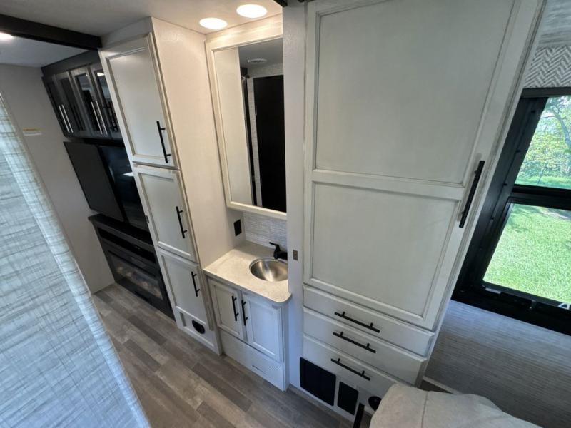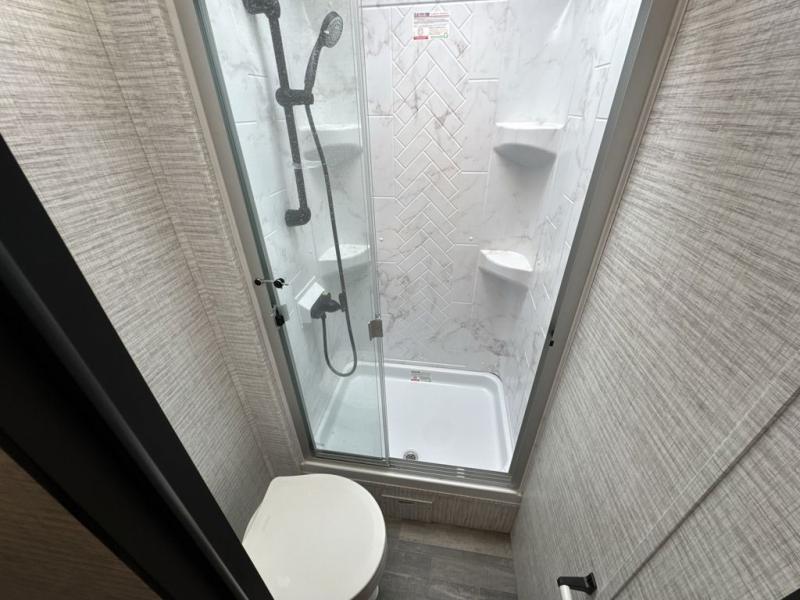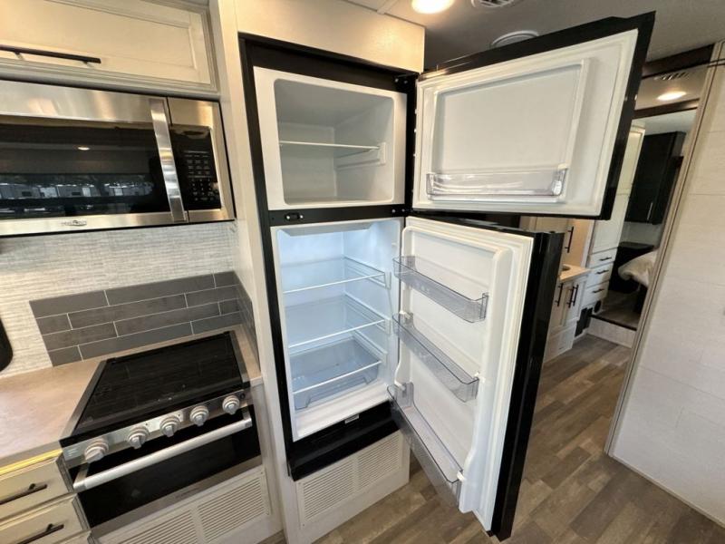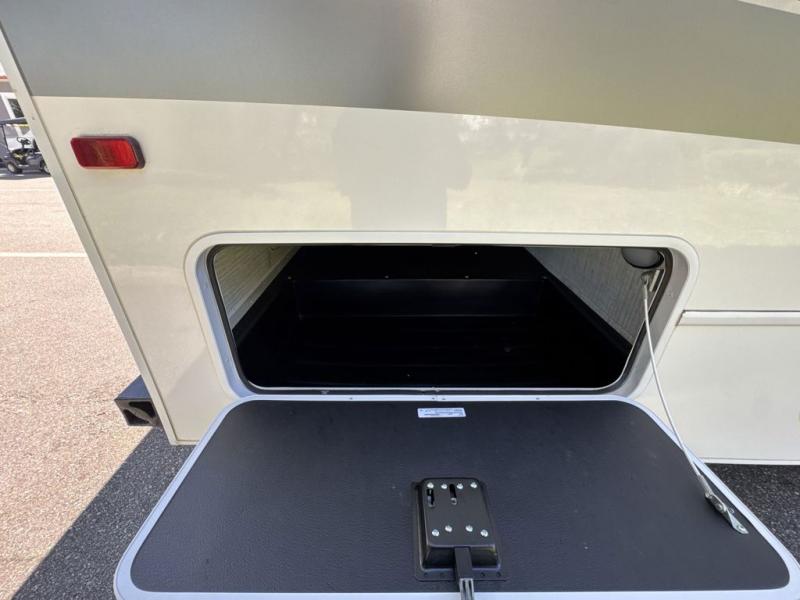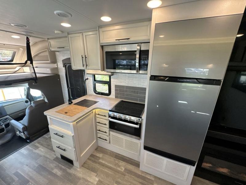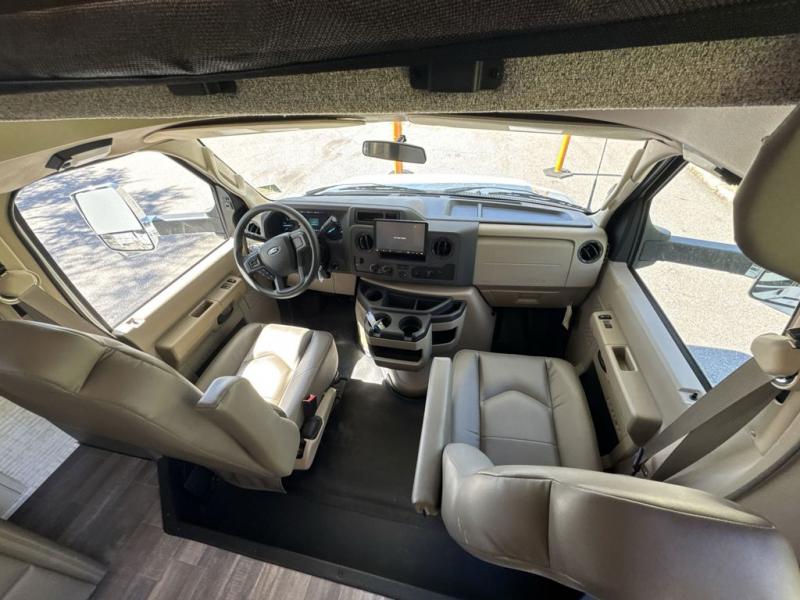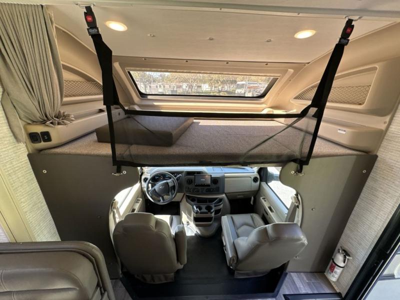 With any Greyhawk Class C gas motorhome by Jayco you will experience smooth sailing thanks to the JRIDE PLUS that comes with Koni shock absorbers, a computer-balanced driveshaft, Hellwig helper springs, and more. The Ford E-450 chassis with a 7.3L V8 325 HP engine will power your excursions, and you'll appreciate the added safety features for your peace of mind. Each model features a Sony infotainment center with Apple CarPlay and Android Auto, backup and side-view cameras, and a tire pressure monitor system the driver is sure to appreciate. Durable construction begins with Stronghold VBL roof, floor and sidewalls, bead-foam insulation, and a one-piece seamless fiberglass front cap. Head inside to find blackout night roller shades, LED-lit pressed countertops, an 84" interior ceiling height, and hardwood cabinet doors and drawers.