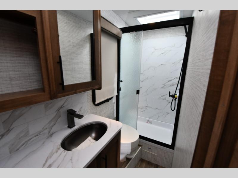 Step inside and experience premium comfort at every turn. The king bed slide in the private rear bedroom offers true residential relaxation, while the bunk over cab adds flexible sleeping or storage space. The fully equipped kitchen includes a Furrion all-in-one cooktop and oven, 10 cu. ft. refrigerator, and plenty of counter space to create home-cooked meals with ease. After a day of exploring, unwind on the jackknife sofa or gather at the booth dinette, then enjoy movie night under the stars with your outdoor entertainment center beneath the 20' electric awning. With Jayco’s legendary build quality and JRide Plus suspension, every mile feels smoother, quieter, and more refined.