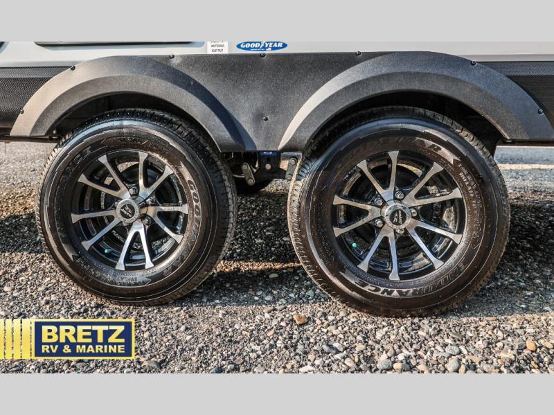 With any Jay Feather travel trailer by Jayco, you will enjoy lightweight towing, convenient exterior amenities, and at-home comforts inside! The Overlander 1 Solar Package included within the Jay Sport Package comes with a 200W solar panel and a 30-amp digital controller so you can enjoy some off-grid camping. There is also a modern graphics package with a dual-colored sidewall, LCI Solid Step fold-down aluminum tread steps on the main entry door, and Climate Shield 0 -100° F tested weather insulation package that will allow you to camp in all sorts of climates. The Customer Value Package will make time outdoors easier than ever with an outside shower, a power tongue jack and a Rock Solid stabilizer system, plus American-made nitro-filled Goodyear tires with self-adjusting electric brakes. More exterior features include a Keyed-Alike locking system, marine grade exterior speakers with blue LED accent lighting, a Magnum Truss roof system, and the list goes on! And we haven't even touched on the interior comforts, like the residential style kitchen countertops and vinyl flooring throughout, decorative backsplash, handcrafted hardwood door/drawer fronts, and multiple USB charging ports to keep you going!