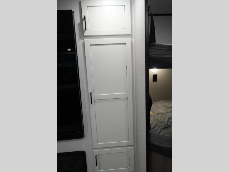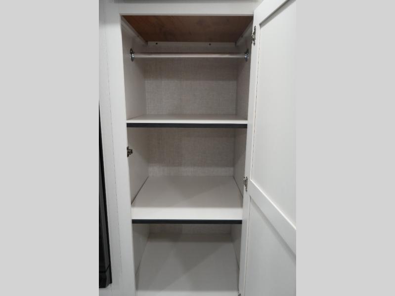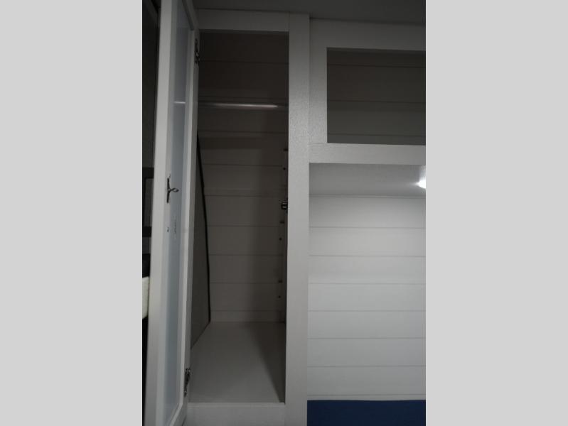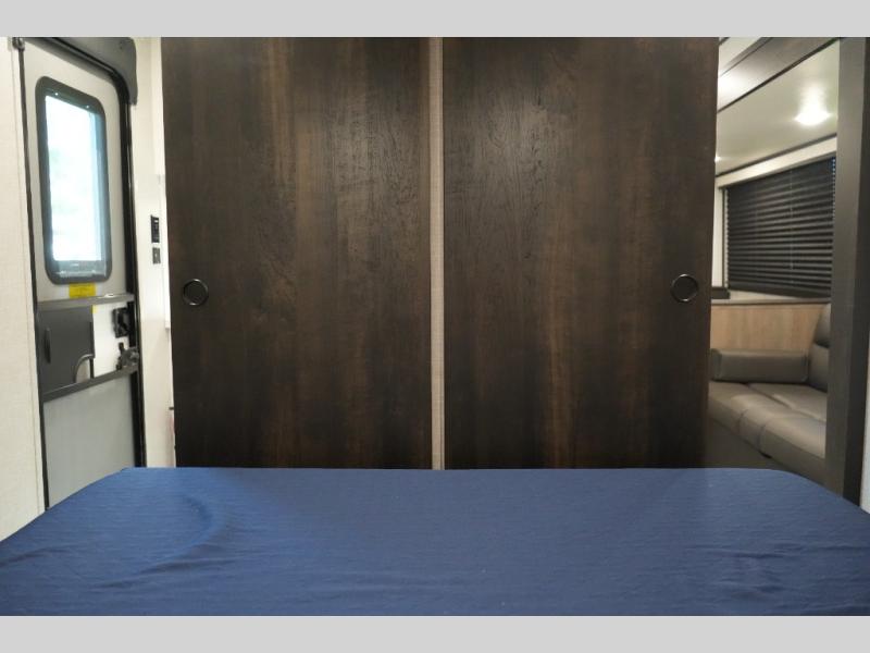 Private Front Bedroom: Enjoy quiet nights in a separate queen bedroom, complete with overhead storage and dual wardrobes.