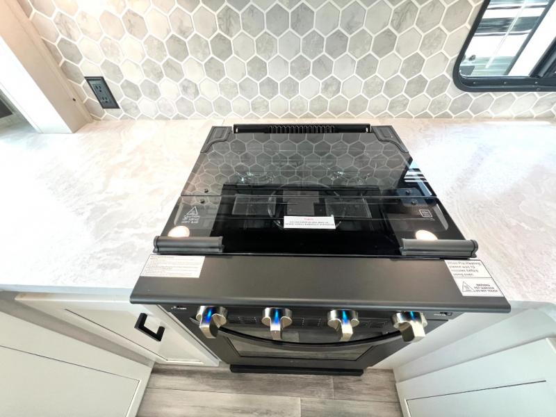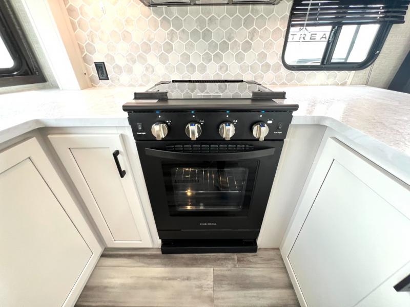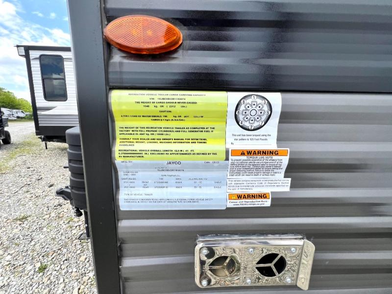 Each Jay Flight Bungalow travel trailer by Jayco features a Magnum Truss roof system, an 8' 6" wide-body construction, and an insulated and enclosed underbelly for added protection against the elements. You will love the open living space and the atrium-style front wall, along with oversized side windows and hardwood look vinyl flooring. A central vacuum with a push button retract makes cleaning and hose storage easier than ever, and the three burner Insignia gas range and 30" microwave will complete the chef's dream kitchen. These travel trailers also include an AM/FM/Bluetooth stereo and marine grade exterior speakers, a power awning with an LED light, an outside shower, plus many more exterior conveniences!