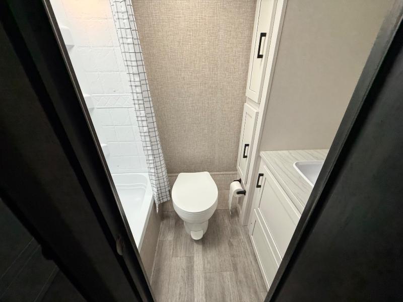 You and your family or friends can take this Jay Flight SLX travel trailer out for some fun! There is a queen bed up at the front, and there are also overhead cabinets and a bedroom wardrobe next to the bed for easy storage. The booth dinette rests on a single slide, so there is more floor space as you work in the kitchen, and it can accommodate one or two more campers for sleeping at night depending on size. The rear bathroom gives you space and privacy, and it also offers you a linen closet to store your towels. For other storage needs, you can use the 8 cu. ft. 12V refrigerator and the exterior storage compartments.