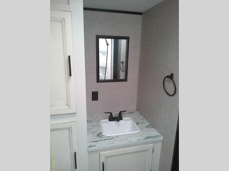 You and your family or friends can take this Jay Flight SLX travel trailer out for some fun! There is a queen bed up at the front, and there are also overhead cabinets and a bedroom wardrobe next to the bed for easy storage. The booth dinette rests on a single slide, so there is more floor space as you work in the kitchen, and it can accommodate one or two more campers for sleeping at night depending on size. The rear bathroom gives you space and privacy, and it also offers you a linen closet to store your towels. For other storage needs, you can use the 8 cu. ft. 12V refrigerator and the exterior storage compartments.