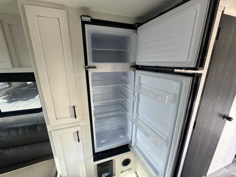 Camping in the woods is just what the doctor ordered and this trailer will provide all the interior comforts you need! There is a three burner cooktop and a microwave oven to prepare meals each day, plus an 8 cu. ft. 12V refrigerator for cold items. After your meal is made, you can dine at the booth dinette or relax on the jack-knife sofa, and these areas can become sleeping space for two to three guests at night. The full bath with a tub/shower means you won't have to use the camp's facilities and the 16' power awning will provide protection from the sun as you visit with other campers!