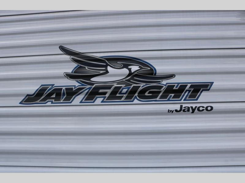 The Jayco Jay Flight SLX travel trailer is quite easy to own because it is lightweight for an easier towing experience. Built on a fully integrated A-frame with galvanized-steel, impact-resistant wheel wells, the Jay Flight SLX has quality at its very foundation. That quality continues on to the electric self-adjusting brakes, easy-lube hubs, Magnum Truss roof system, and LP quick connect. Some of what the mandatory Customer Value Package includes backup camera prep, Keyed-Alike entry and baggage doors, marine grade exterior speakers, and an on-demand tankless water heater. The optional STX Edition for Indiana built units only and the optional Baja Package built for Idaho units only includes Goodyear off-road tires, an enclosed underbelly, a deluxe graphics package, and a wide-stance axle to name a few features.