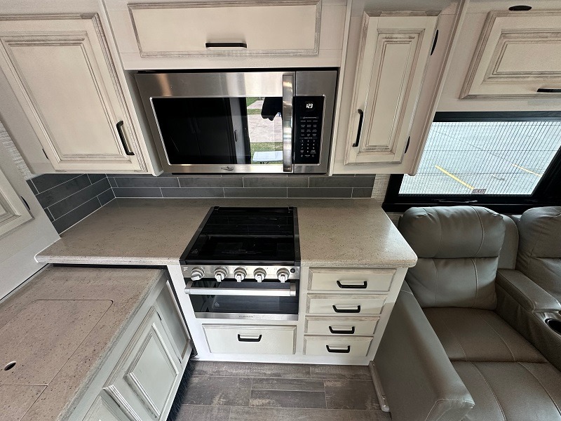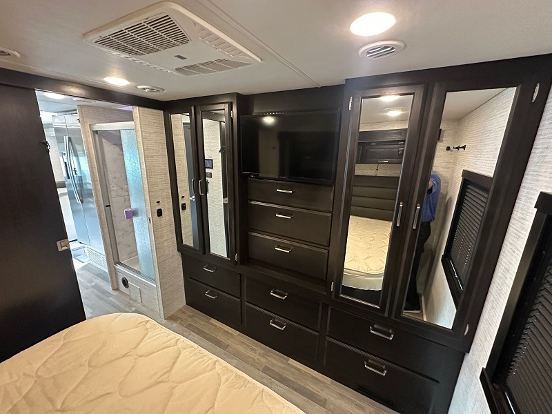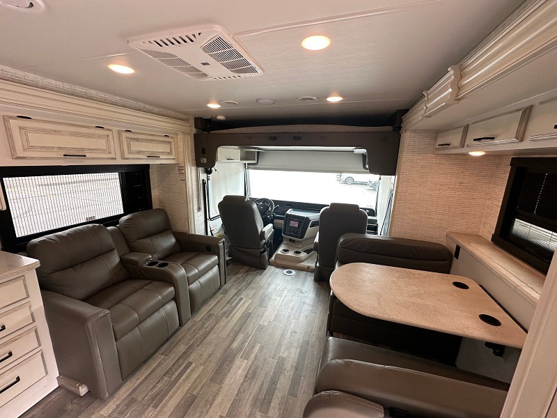 The fun is just about to begin with this Precept Class A gas motorhome! You will have an amazing night of sleep on the RV king bed slide back in the private bedroom, and the bedroom also offers you an LED TV to watch while you relax. The separated bathroom gives you a chance to have two people getting ready at the same time, and the opposing slides in the main living area provide some extra room for lounging or socializing. As you drive down the road, you'll appreciate the removable cockpit table that sits in between the swivel cab seats, and you can create some extra sleeping space by adding the optional drop-down overhead bunk in the cab.