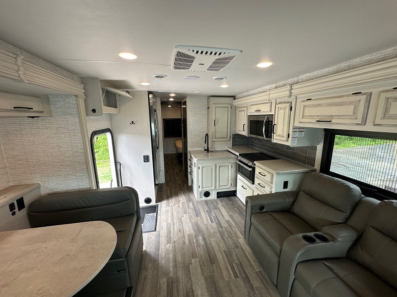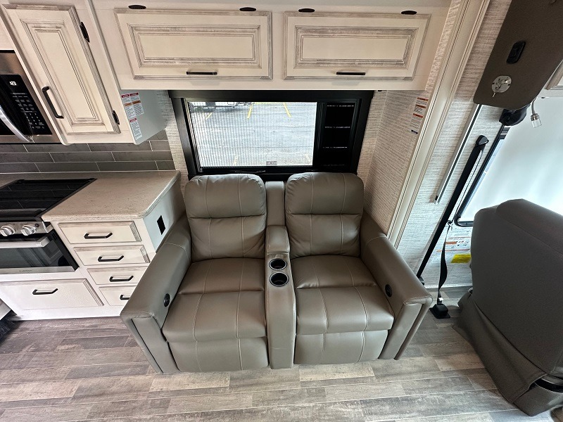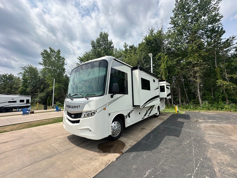 The Jayco Precept Class A gas motorhome comes with some features that you'll only find on a Jayco product, like the JRIDE PLUS which offers you a powerful blend of precise handling and renowned stability on the road and the Firefly total coach control system which allows you to control your coach's operations from just about anywhere with your phone. You'll find two-point lap seatbelts in all designated seating locations, and the one-piece, seamless fiberglass front and rear caps resist wear and tear over the years. The Precept also offers you the lightest yet strongest construction in the industry with the Stronghold VBL lamination on the roof, floor, and sidewalls. You'll also be very pleased to find a 120" panoramic windshield, automatic hydraulic leveling jacks, and a 5,500W generator with auto-gen start.